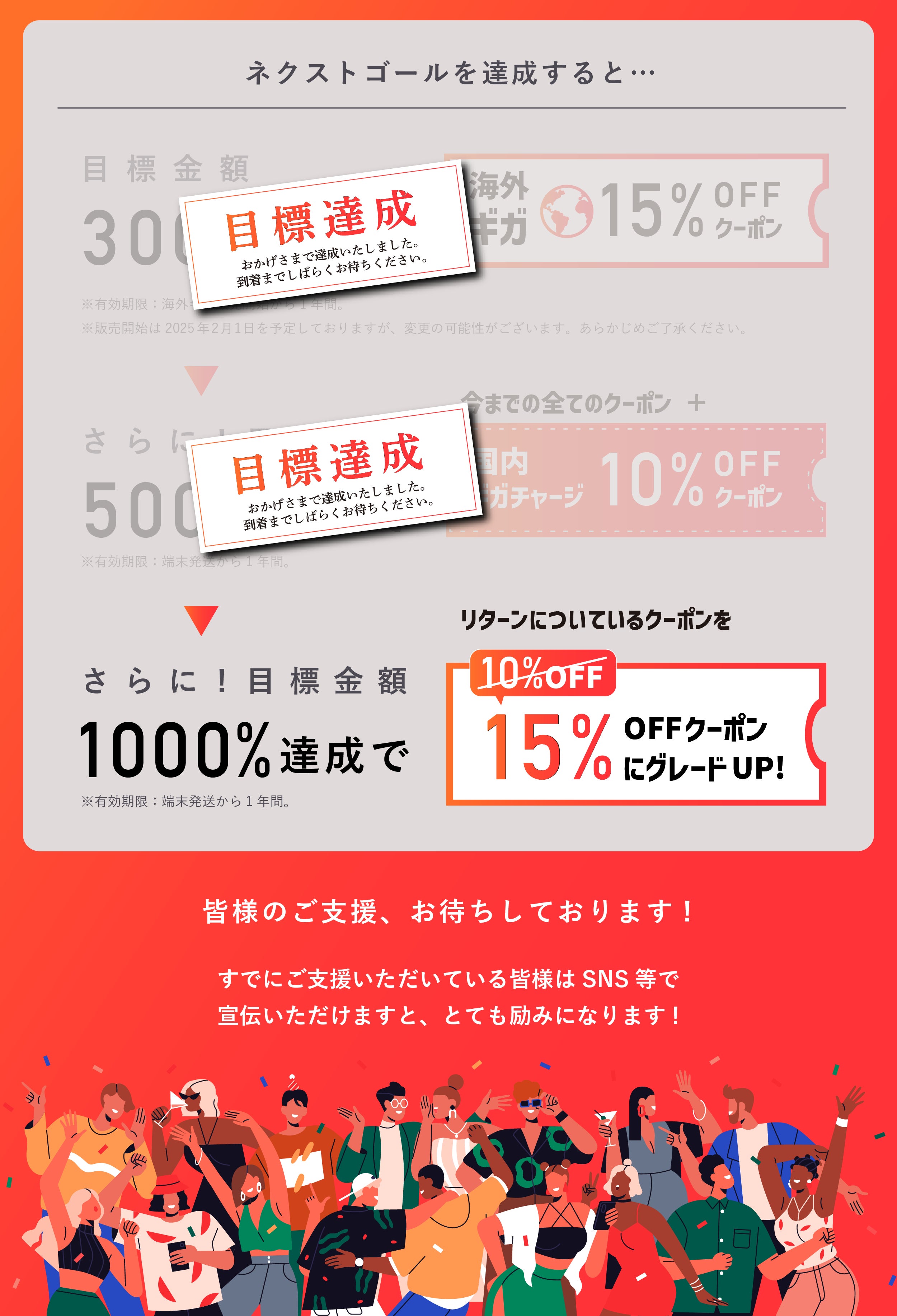 また、こちらのクーポンは今からご支援いただいた皆様も対象となります。