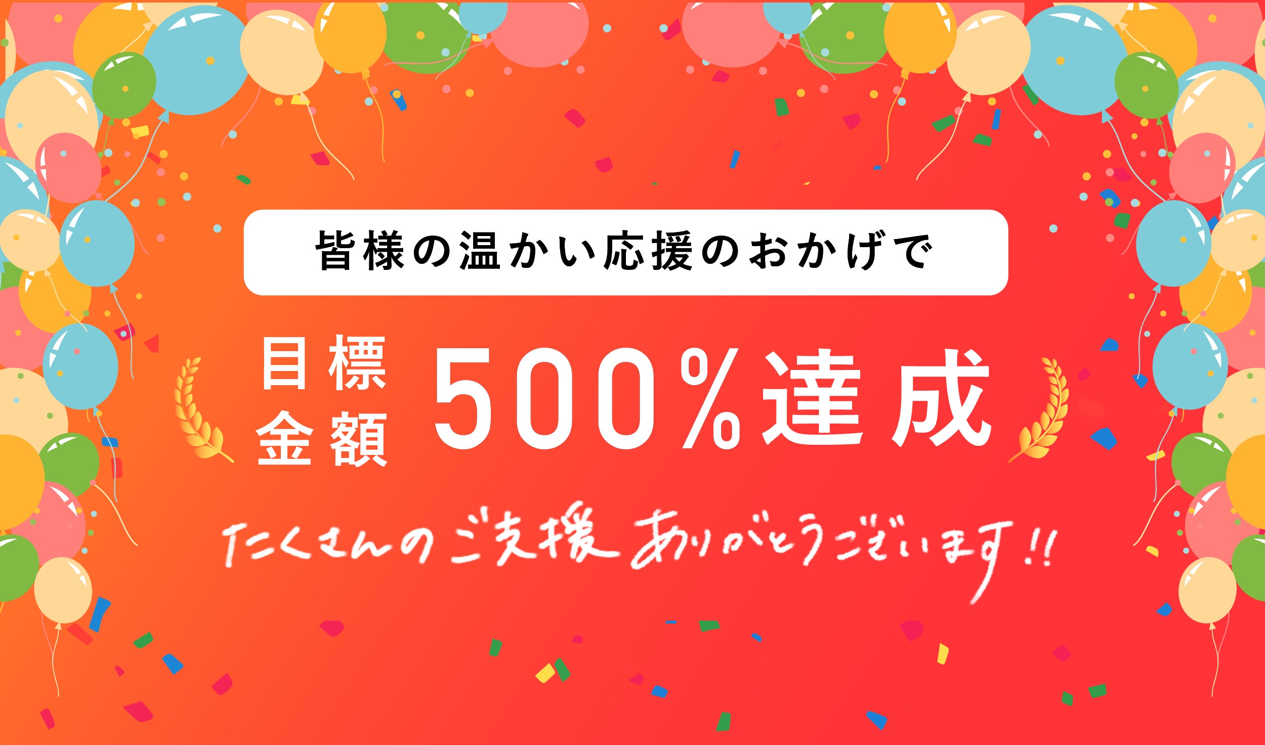 ネクストゴールに設定しておりました目標金額の500%を無事、