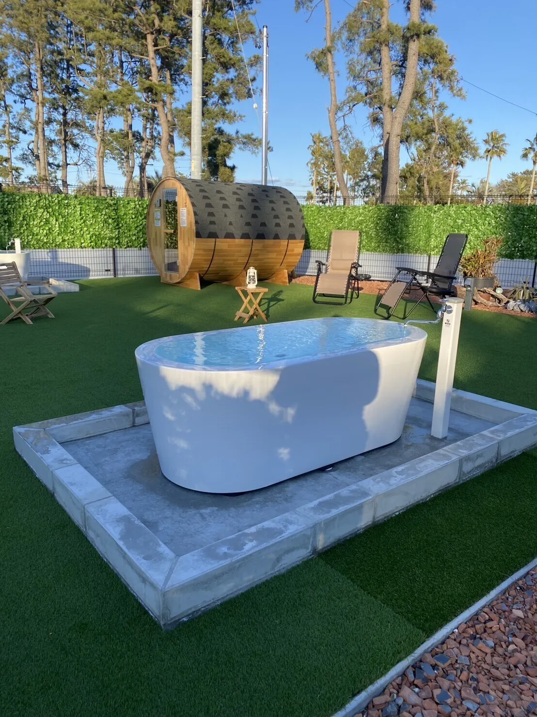 そして、一番の特徴はなんといっても敷地内から汲み上げた【冷鉱泉を使用した水風呂】です!当施設は周囲を太平洋と浜名湖に囲まれている為、塩分を豊富に含むナトリウム塩化物泉【新居浜温泉】の源泉井戸があります。塩化物泉は、血液の循環を促進させ殺菌力が強く、痛みをやわらげる鎮静作用があると言われています。加水無し源泉100%掛け流しの冷鉱泉で唯一ここでしか味わえない水風呂と広々としたガーデンで自然風の外気浴により整うサウナをご体験ください♪