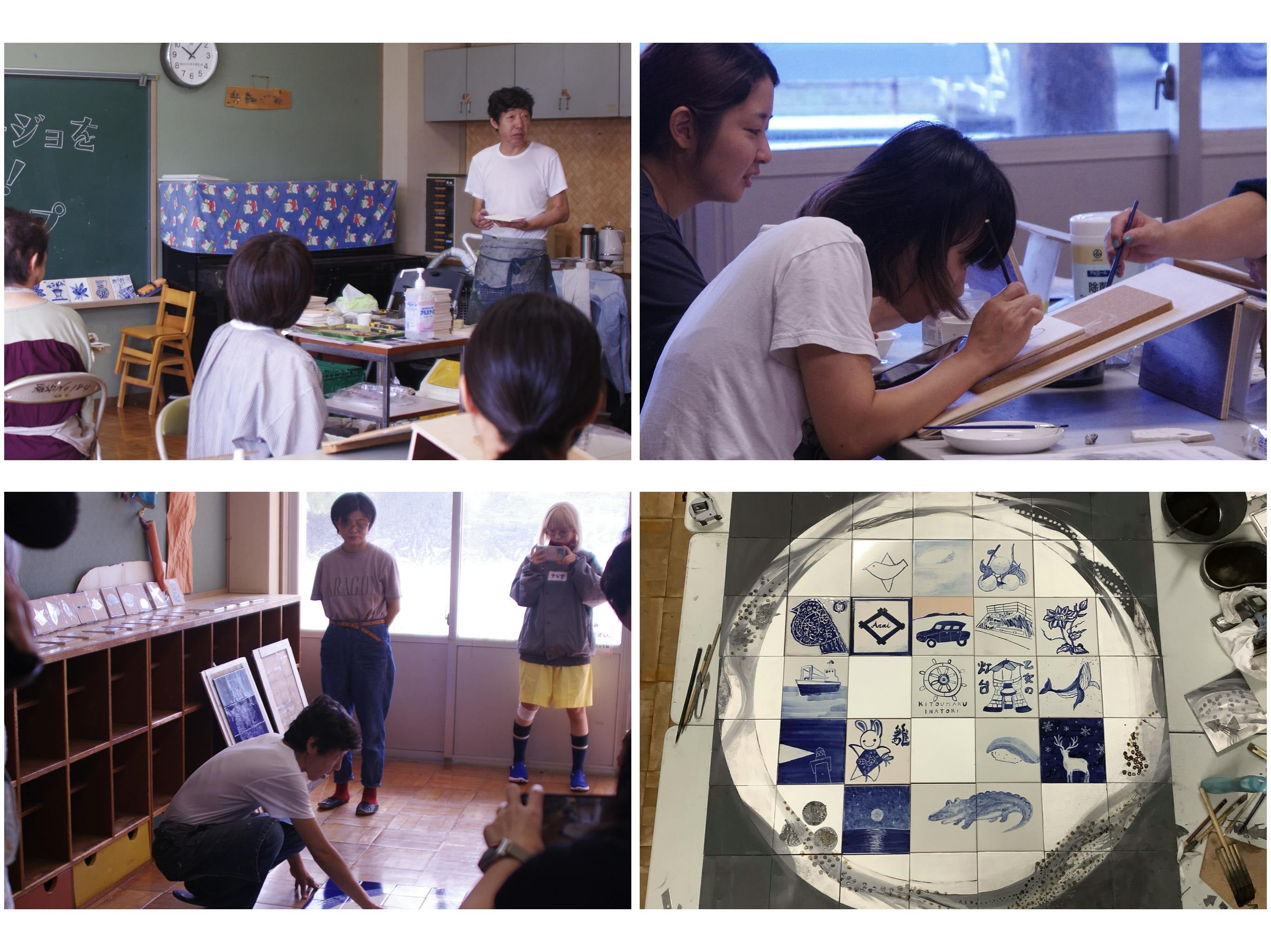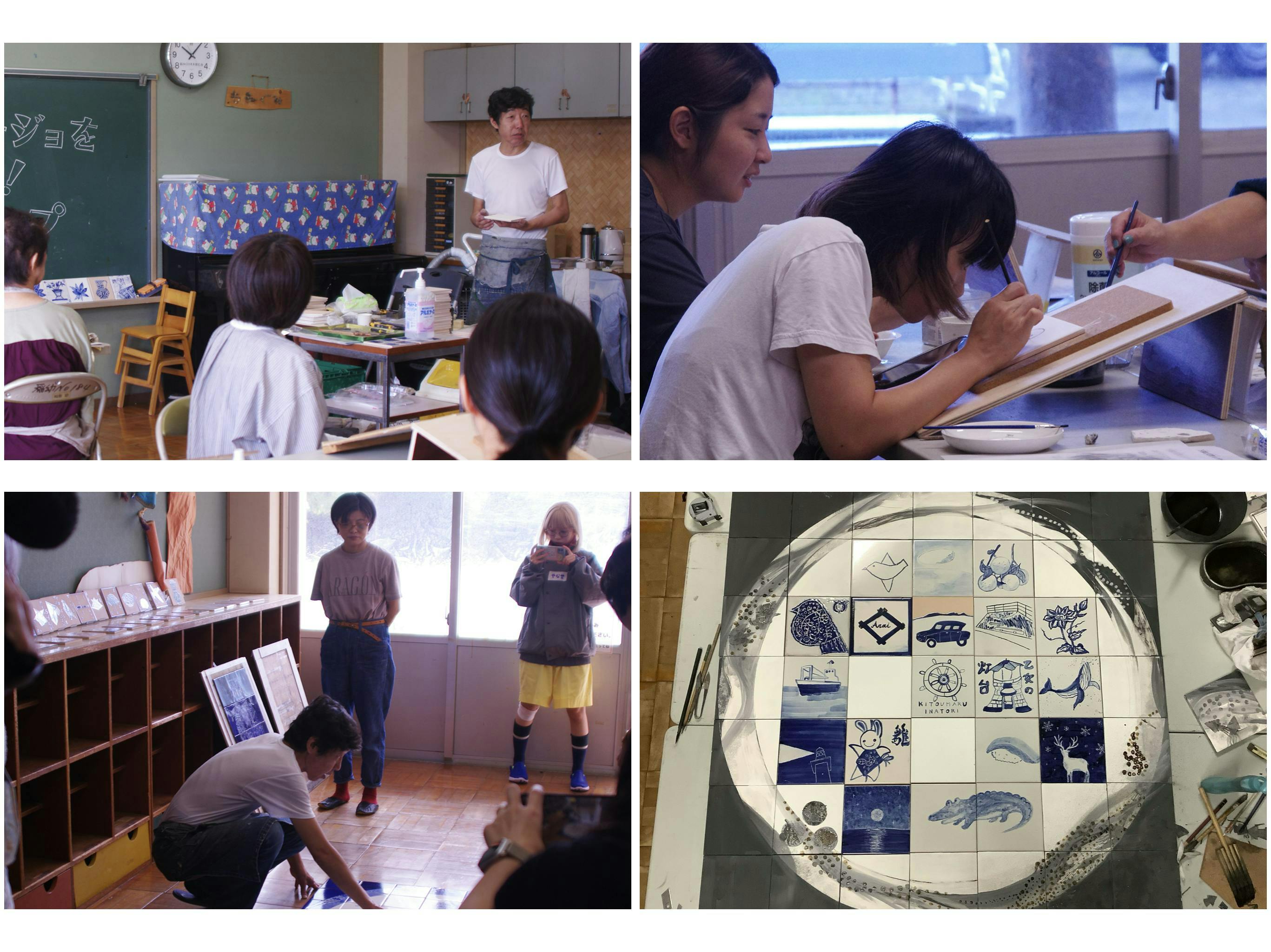 完成したタイルは白須氏が焼成し、彼の作品と組み合わせて、稲取の景観に調和する壮大なタイル画として展示されます。
