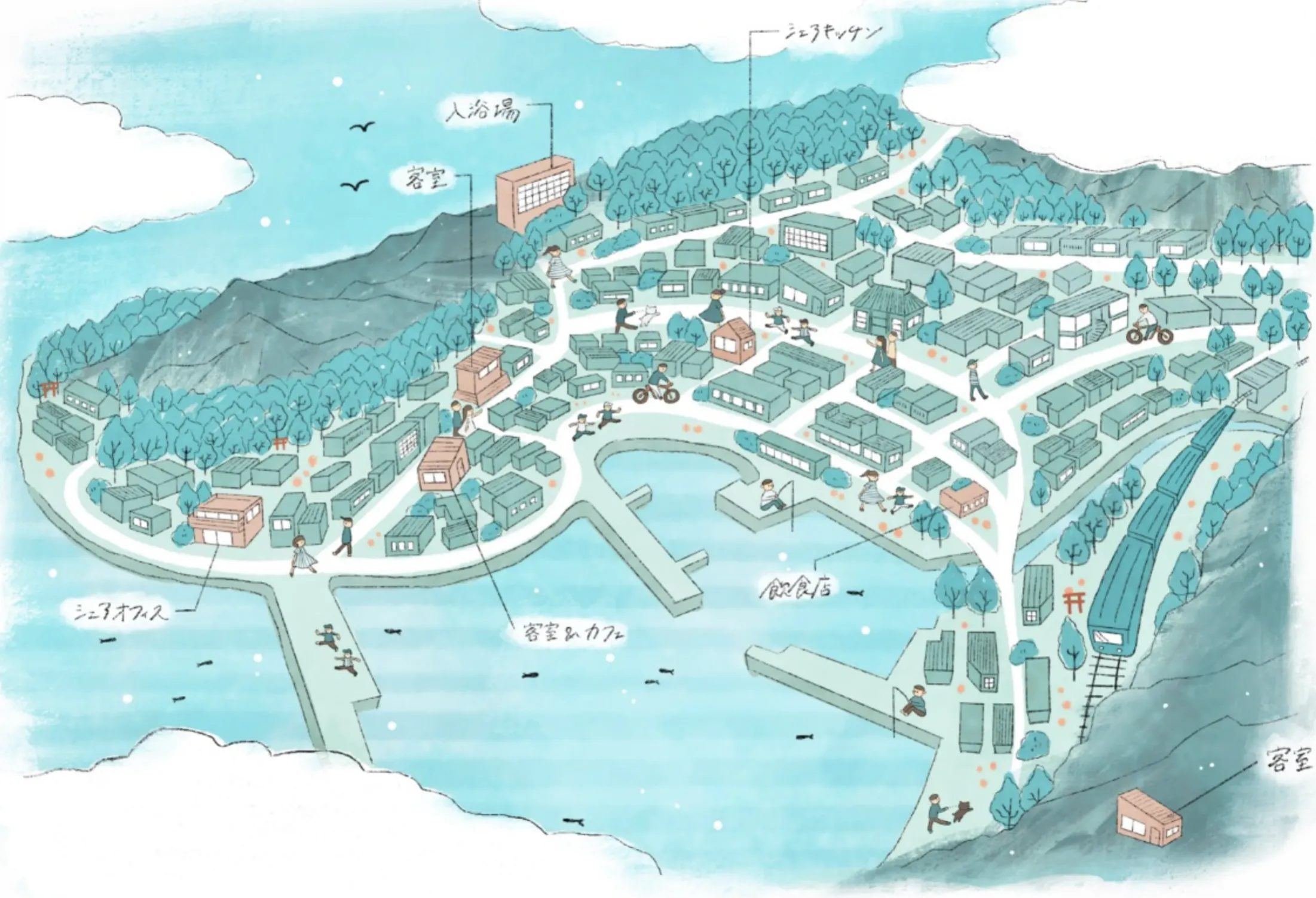 私たちが目指す稲取の未来の風景はここに暮らす人々と観光などで往来する人々、双方の営みが活性化することによって成長する町並みです。