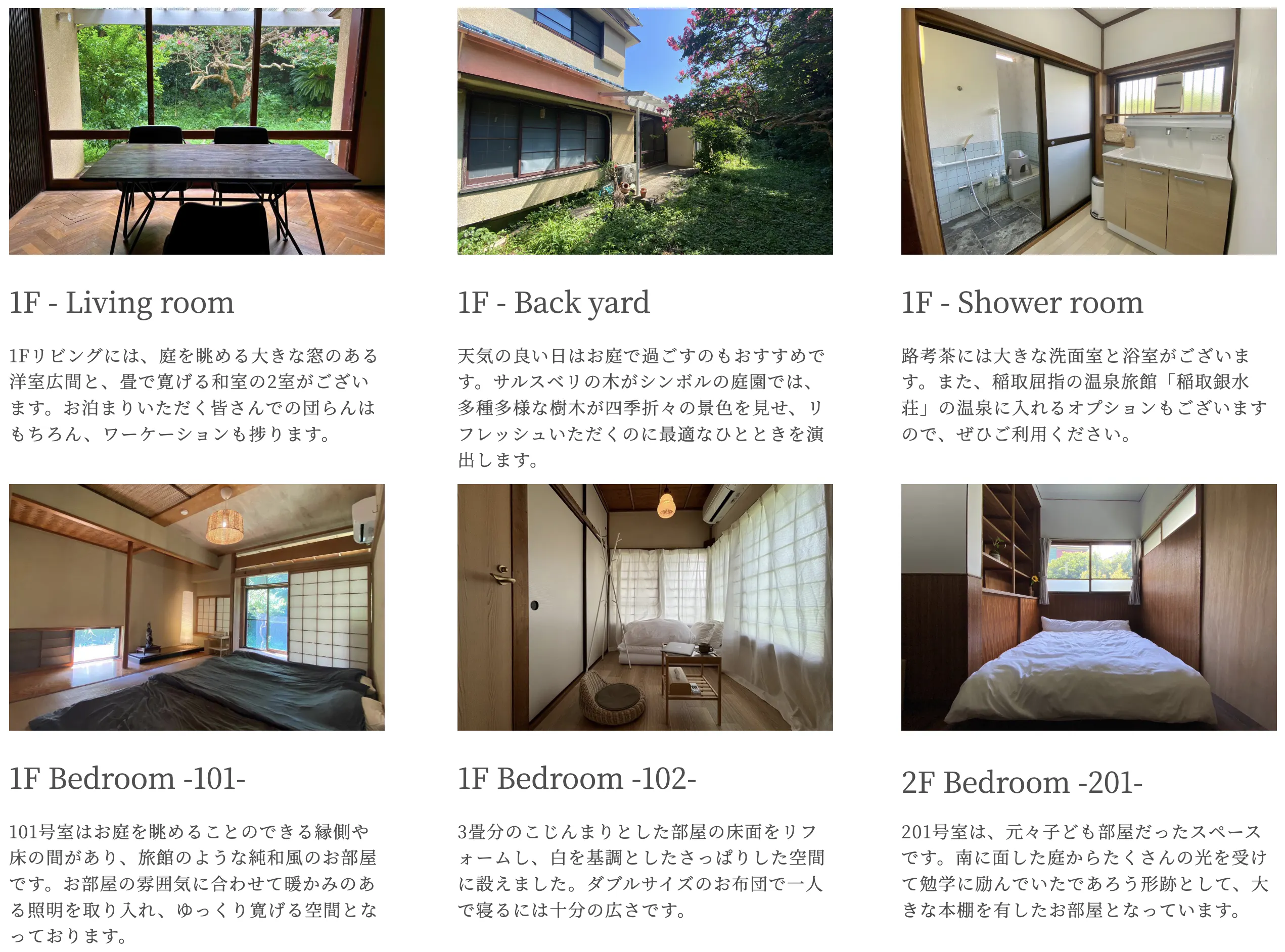 現在はすでに屋敷の一画を宿泊施設「湊庵 路考茶 -so-an rokocha-」として営業しており、今後飲食機能も付加していくなど、アートフェスの成長と調和させながら段階的に改修を計画しています。