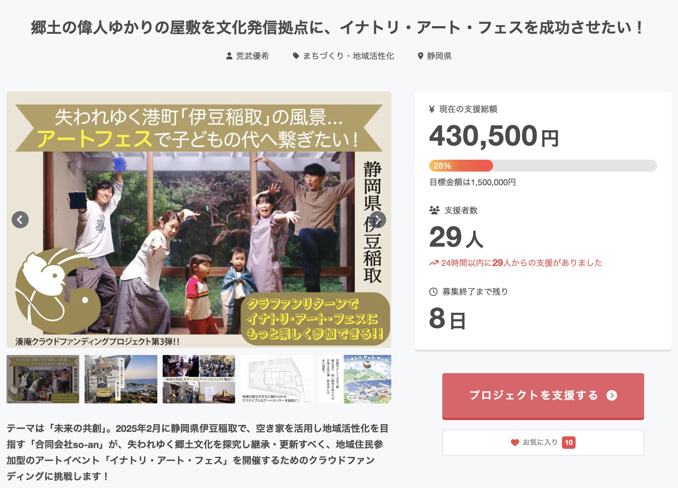 イナトリ・アート・フェス成功を目指したクラウドファンディングの1日目が終了。