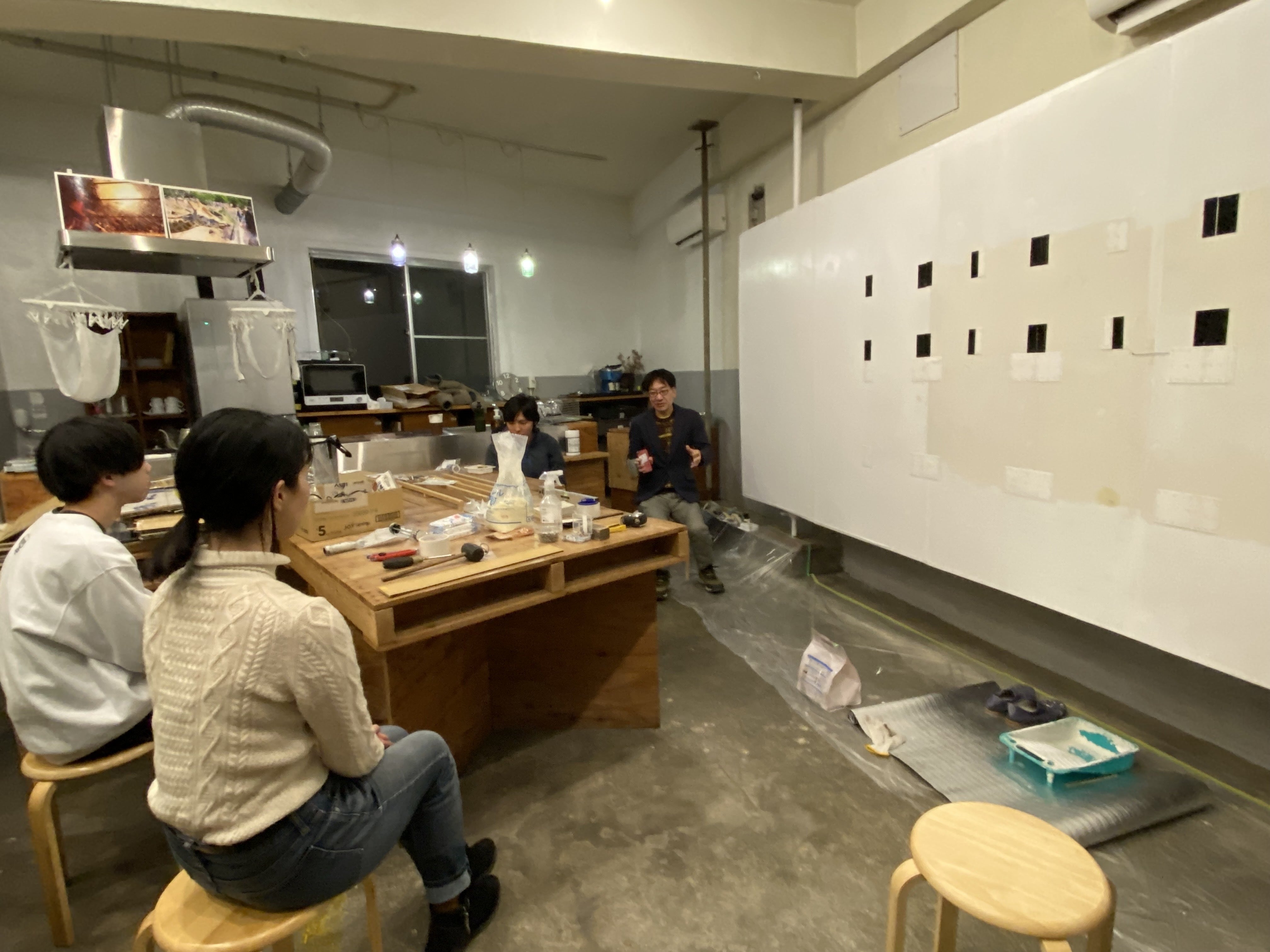 癸生川さんとこはくのお茶の間劇場のような写真を撮ってしまいましたが、こちらには白須さんとアズレージョワークショップに参加したみなさんの共同作品の展示や稲取の新しい道づくりのリサーチや提案資料をまとめたプレゼンテーションを展示する他、参加型企画として稲取の新しい道づくりの奇跡や路考茶建築模型制作セットのご用意、昨年の作品もします!