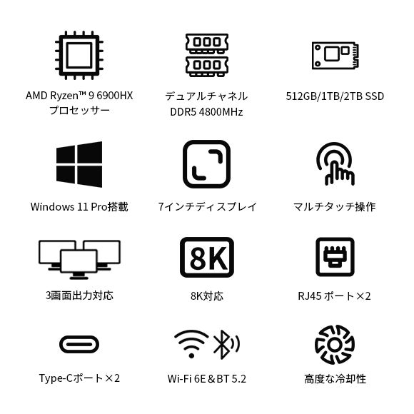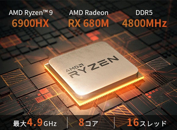 CPUは優れたAMD Ryzen™ 9 6900HXプロセッサーを搭載。このプロセッサーは強力な8コア16スレッド構成と16MのL3キャッシュを持ち、さまざまな作業に簡単に対応できます。