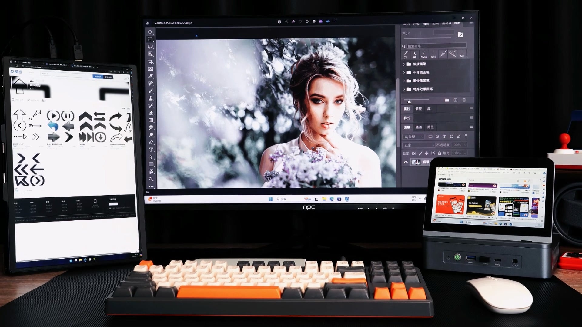 ・ 7インチタッチディスプレイとWindows 11を搭載、単体でも使える!4モニター環境も構築可能!