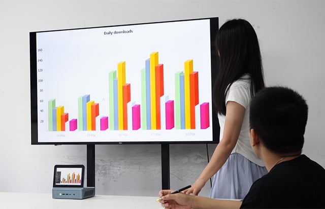 映像出力対応のHDMIポート、DPポート、フル機能Type-Cポートを搭載しており、最大 3 台のモニターの同時画面出力に対応します。