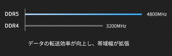 メモリはDDR5を採用しており帯域幅が大幅に拡張され、動画編集などの負荷の高い処理もこなすことが可能となっています。