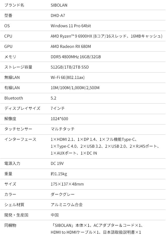「SIBOLAN」に搭載済みのは16GB/32GBのメモリと、512GB/1TB/2TBのストレージ容量です。