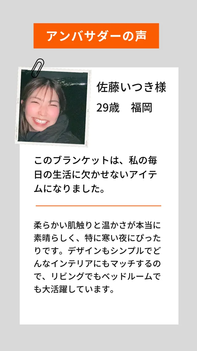 このウルトラダウンブランケットは、お客様の生活に快適さと温もりを提供できればという想いで