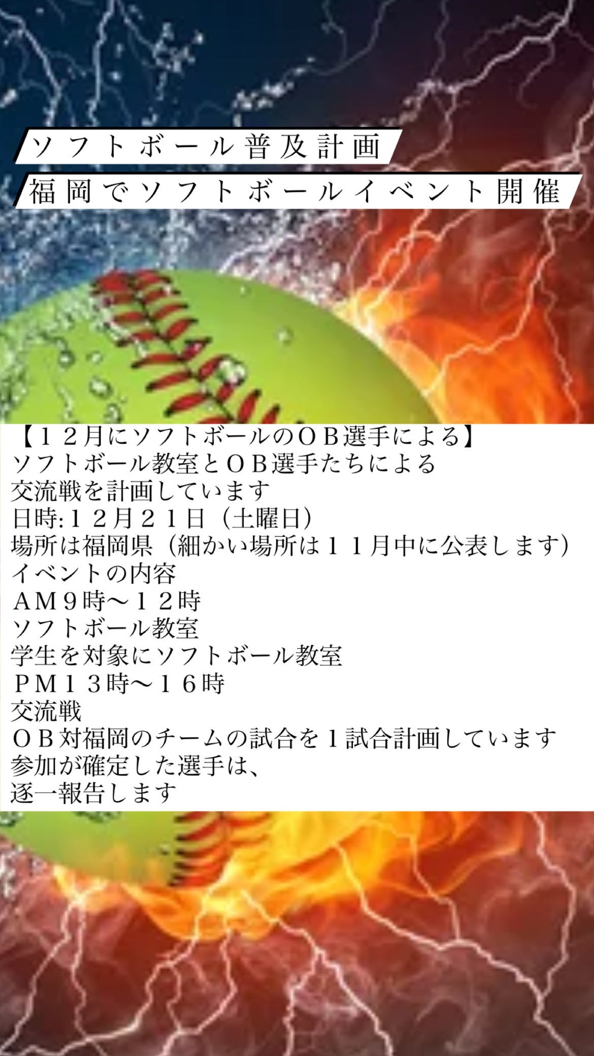 12月21日に福岡でソフトボールイベントとして、ソフトボール教室を開催するこまとになりました。