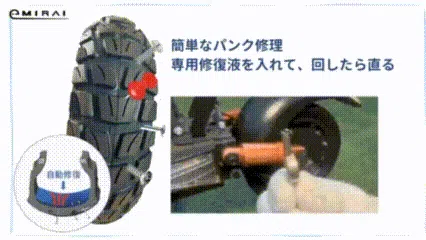 ■簡単パンク修理、専用修復液で自動的に修復