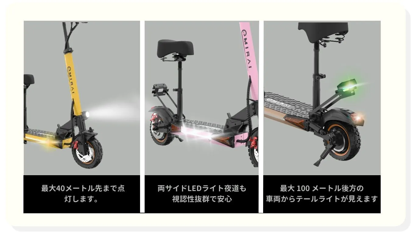 ●効率的なエネルギー消費:座っていると、立ち乗りに比べて電気の消費が少なくなるため、バッテリーの持ちが良くなります。これにより、長距離走行時のエネルギー消費を抑えることができます。