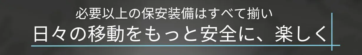 【LIFE】は、法律で定められた全ての保安装備を完備し、ユーザーが安心して利用できるよう設計されています。視認性を高めるライトと反射板、高性能なダブルディスクブレーキシステム、警笛機能、そしてスピードリミッターなど、あらゆる安全機能を搭載しています。これにより、ユーザーの安全を第一に設計された【Life】をお楽しみいただけます。