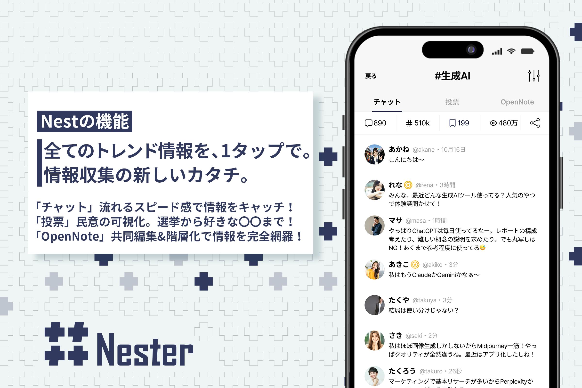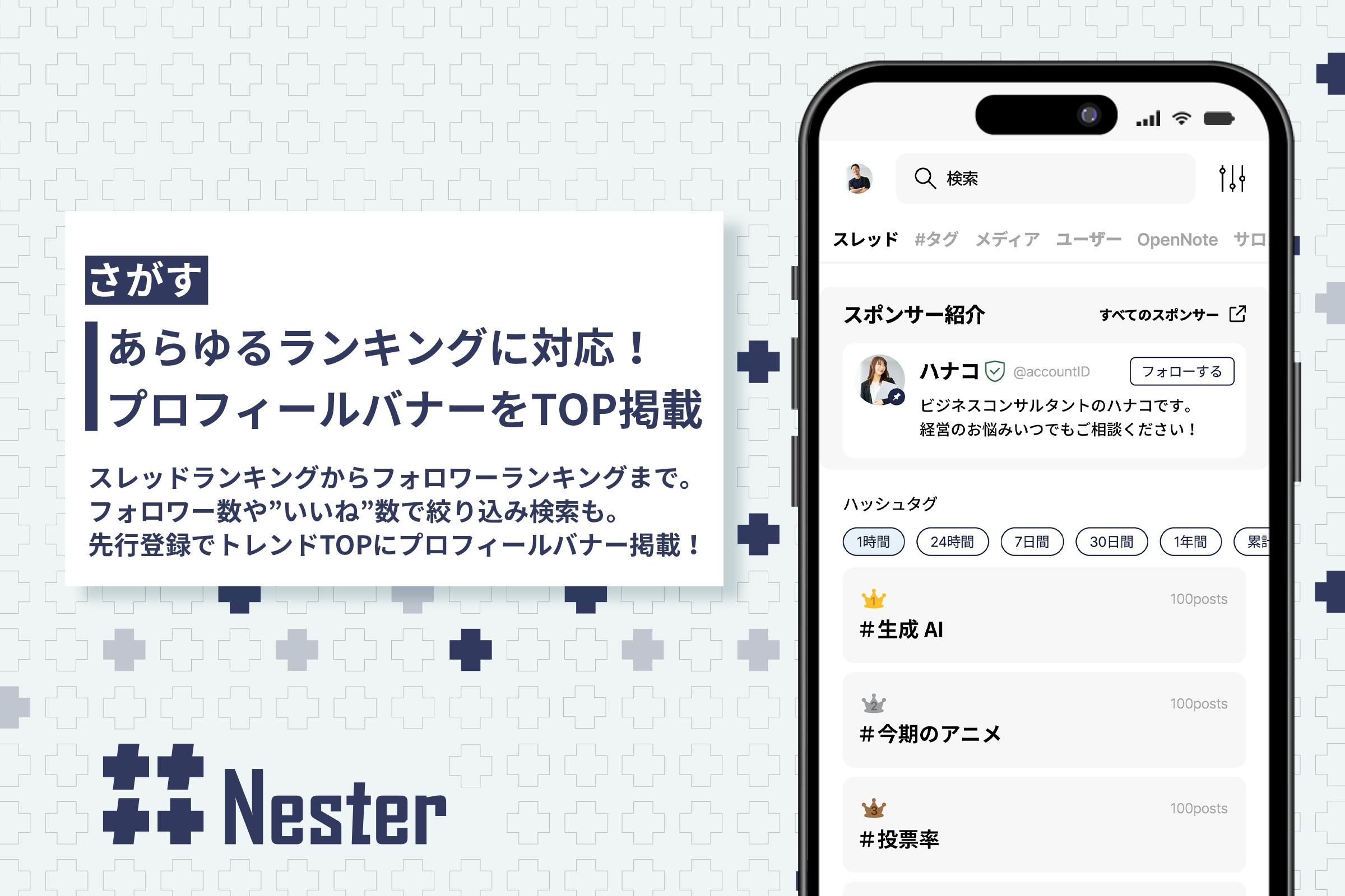 Nesterは次の新たなSNSのポジションを担う、革新的なスレッド型SNSです。
