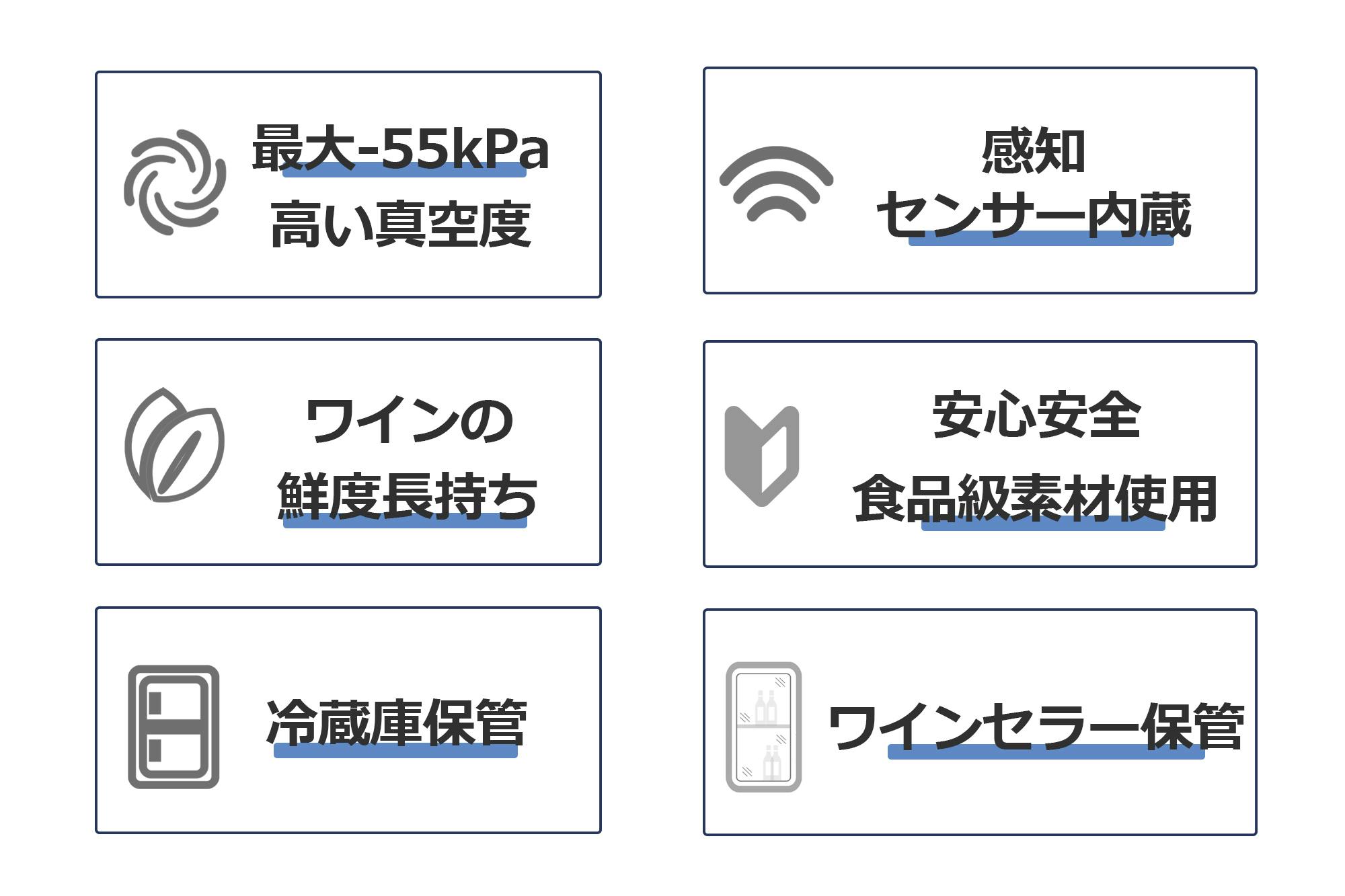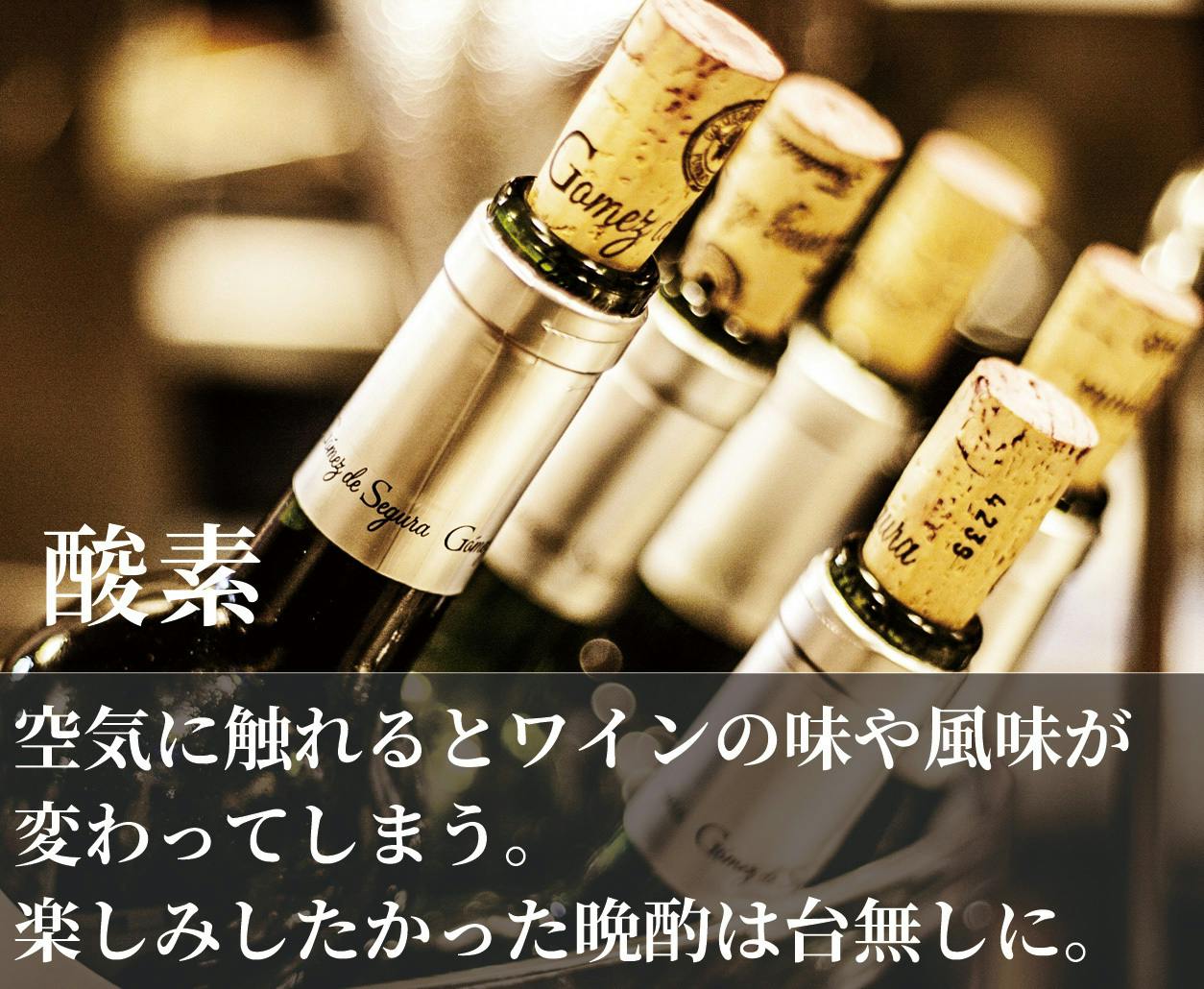 ※ワインなどの酸化を完全に防止するものではありません。変化の速度も状態などにより異なります。