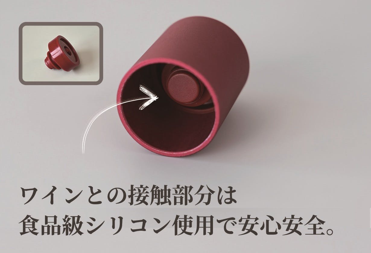 内部は密閉性が高いシリコン製です。食品レベルの材質を採用。密封性・耐久性が優れているので外部からの影響を防いで酸素にダメージされやすいワインを守ります。
