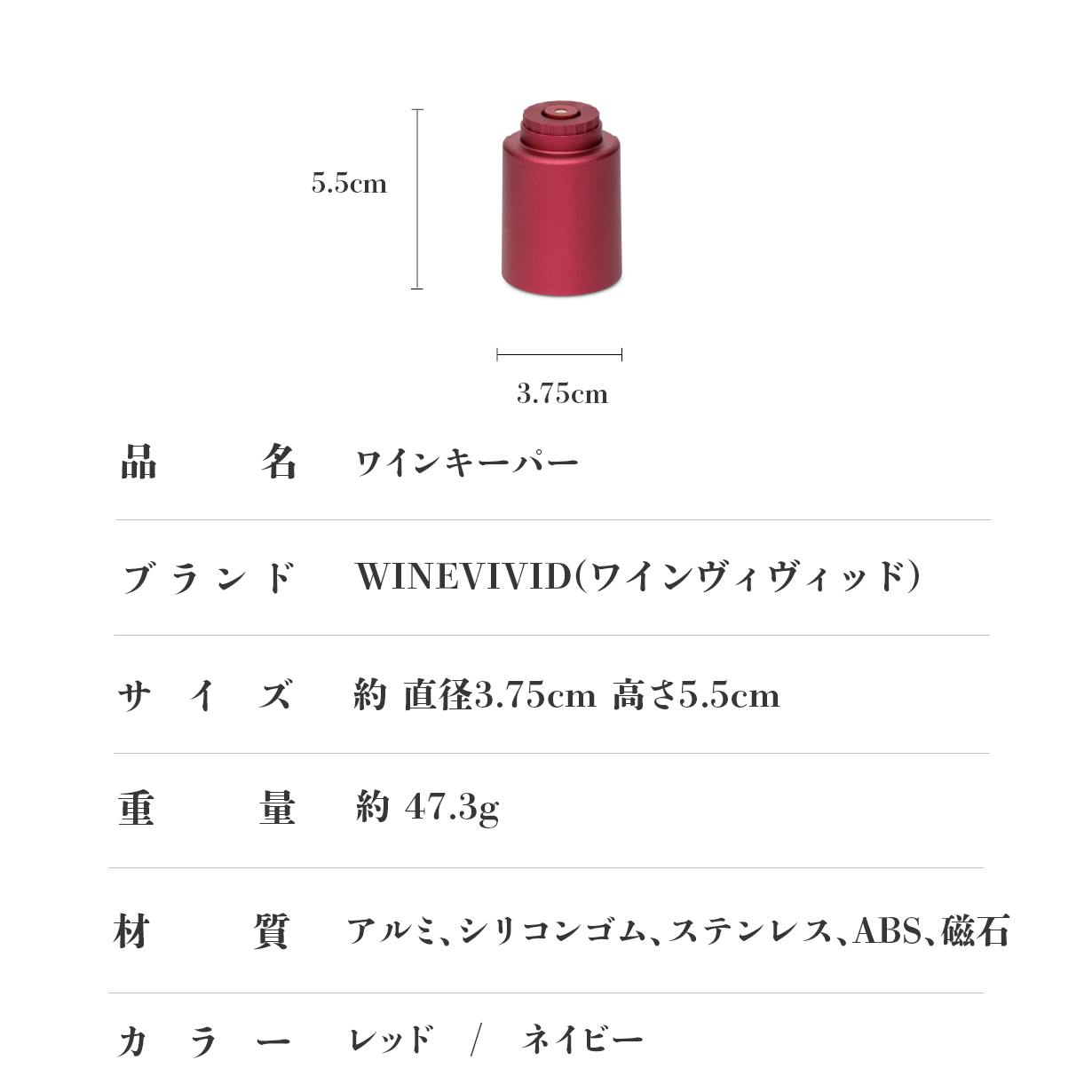 WINEVIVIDは、明るくて、生き生きとした、ワインが長く生き生きと保てる救世主です。飲みかけのワインを美味しい状態で保存できる優れモノ。ワインキーパーを挿すだけで、自動吸引ポンプが内部の空気を抜き真空化、ワインの酸化を軽減。それによって、酸化による味の変化を最大限抑制します。