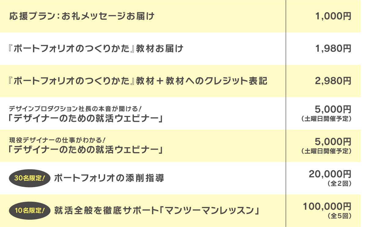 という学生のためのサポートコンテンツも、リターンとしてご用意する予定です。