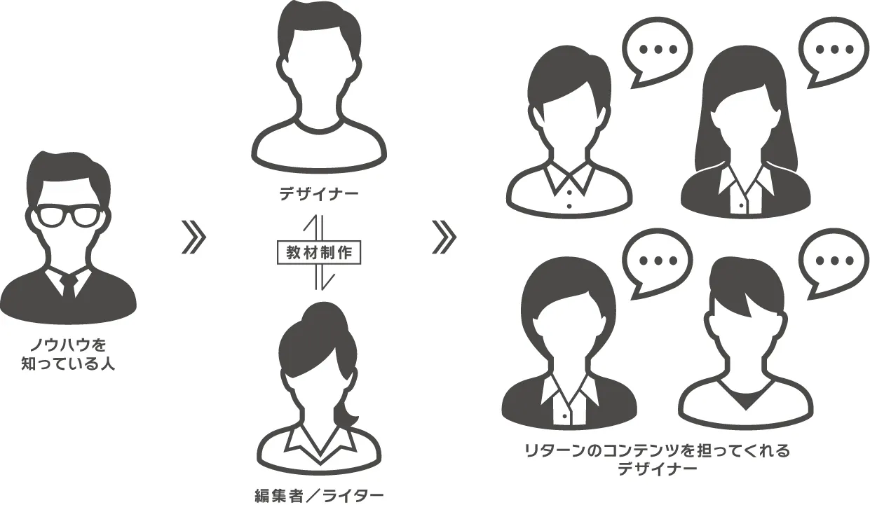 <一冊の教材をつくるには、最低限、以下のメンバーが必要です>