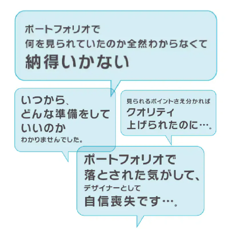 デザイナーとして活躍するHさんより、プロジェクトへの応援メッセージをいただきました!↓↓↓デザイナーとして働いて20年ほどになります。新卒学生の面接・選考に参加したこともあります。現場で本当に活躍できるデザイナーは、先天的なセンスがあるに越したことはありませんが、センスよりも基礎がしっかりしている人に他なりません。センスは後から磨くこともできるし、基礎はセンスがなくとも身につけることができます。また、基礎という「土台」がしっかりしているからこそ、その上にセンスをたくさん載せていくことができるのです。残念なことに、その大事な基礎を学校ではみっちり教えてはくれません。私が学生の時もそうで、結局、自己流で身につけていくしかありませんでした。二宮さんの「ポートフォリオの教科書」は、現場が求めるデザイナーを育成し、デザイナーとして働きたい学生の熱意を後押しする素晴らしい取り組みだと思います。一人でも多くの学生がデザイナーとして躍進し、業界が盛り上がっていくことを期待しています。