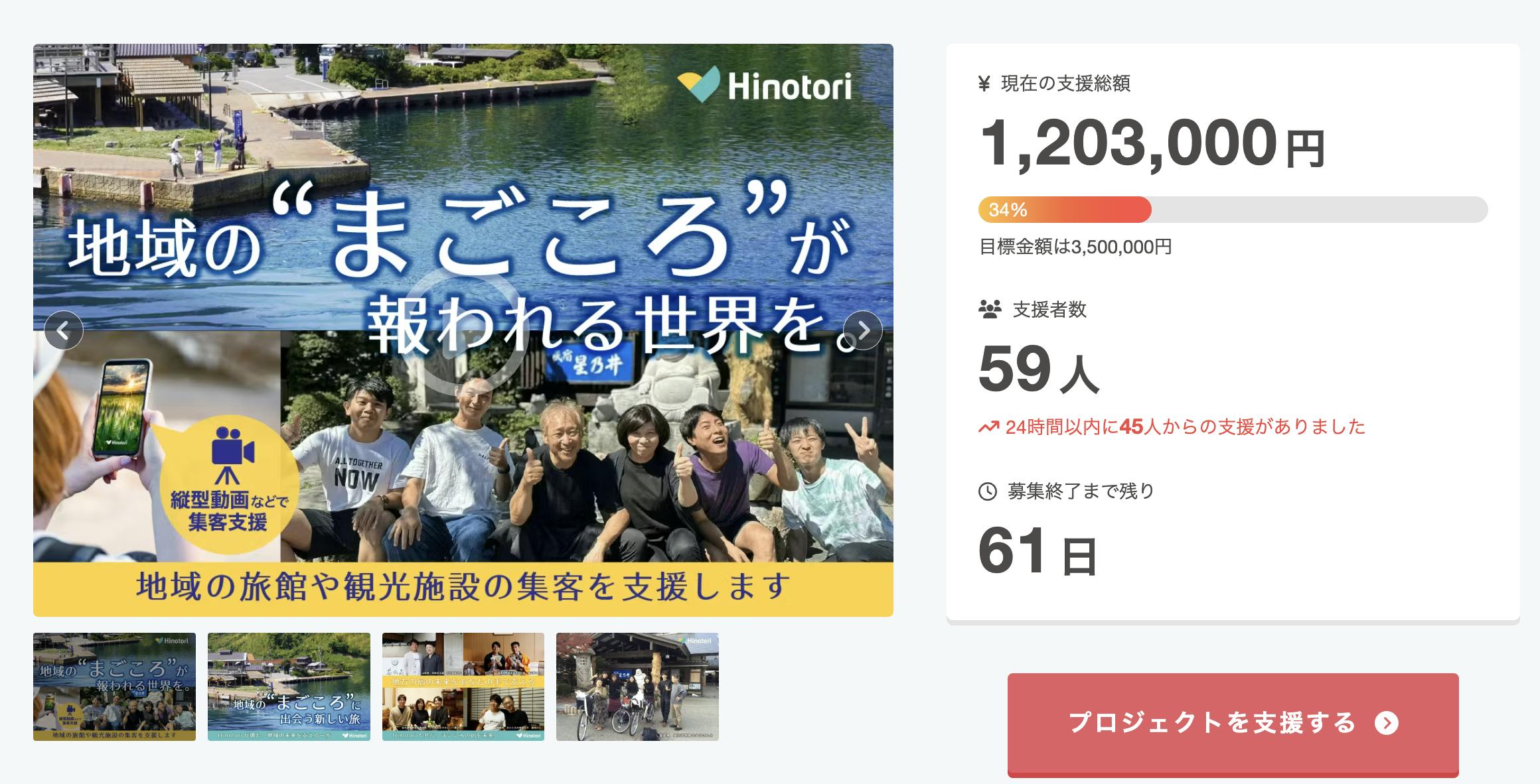 開始1日目にもかかわらず、59名・総額120万円以上のご支援をいただけました。
