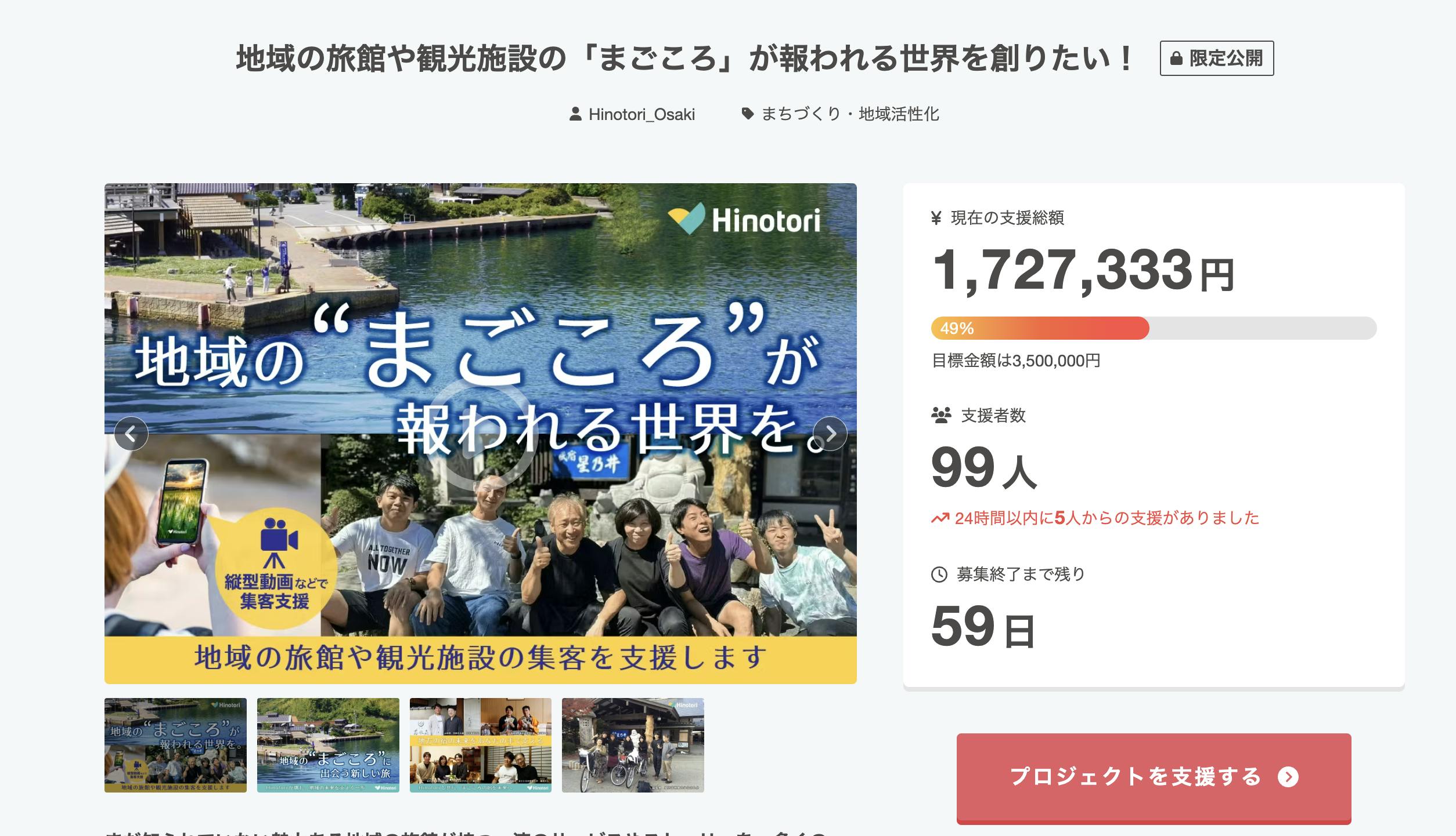 ここから60日でさらにたくさんの方にご支援いただき、地域のまごころをお届けするための活動を盛り上げていければと思います。