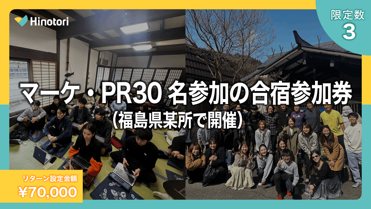 こちら2名様までご参加いただける合宿チケットを限定数2組でリターンとしております。