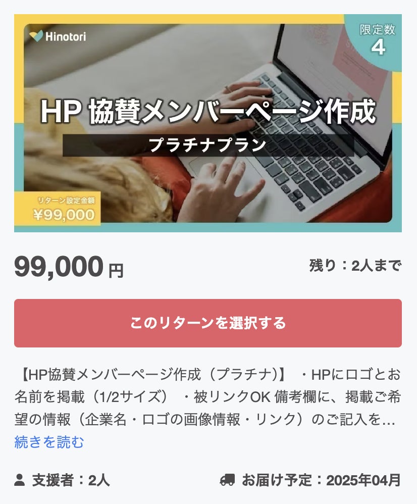 10万PVのHinotori Mediaからも被リンクさせてもらっておりますのでSEO観点でもおすすめのリターンです。