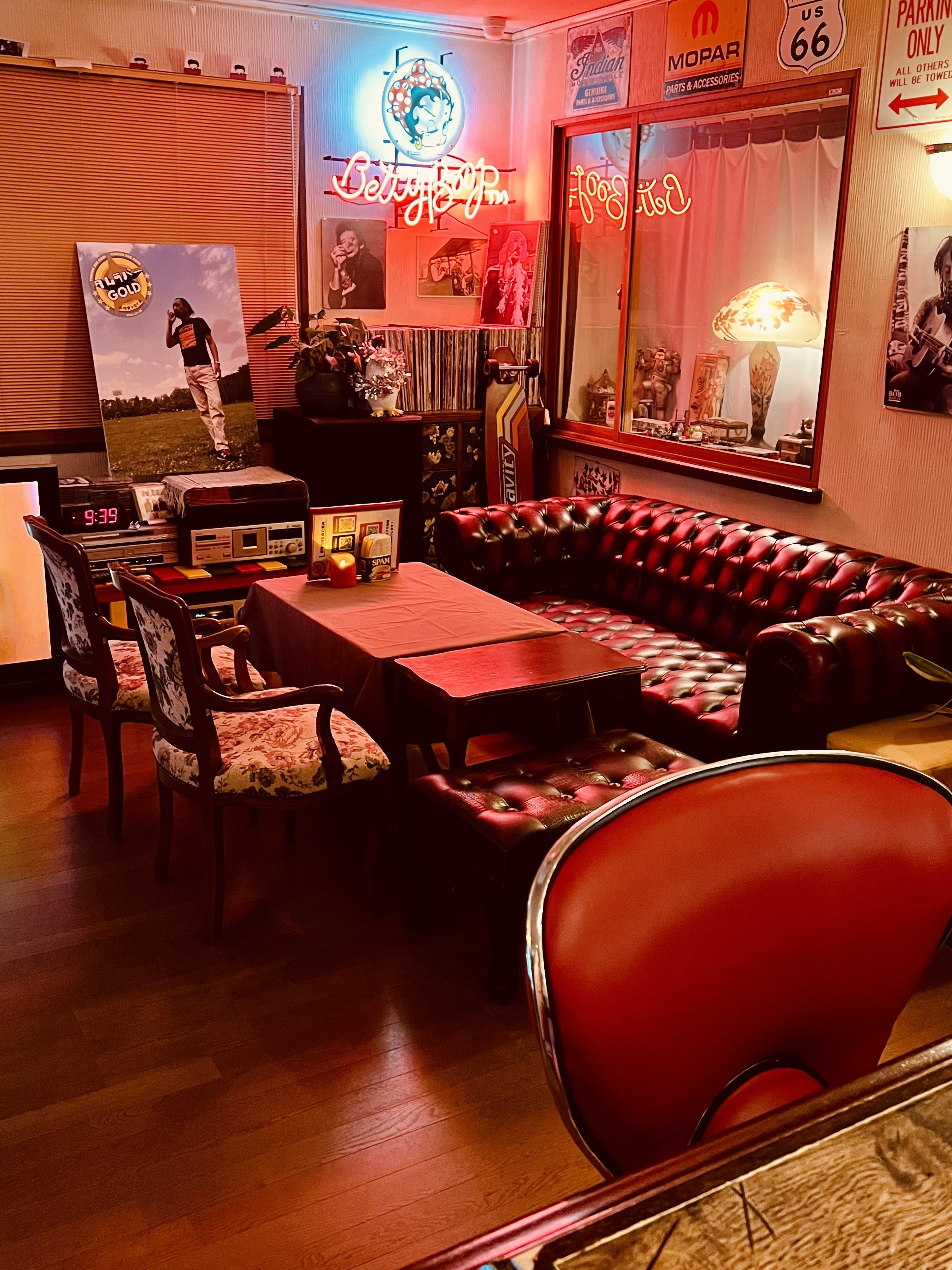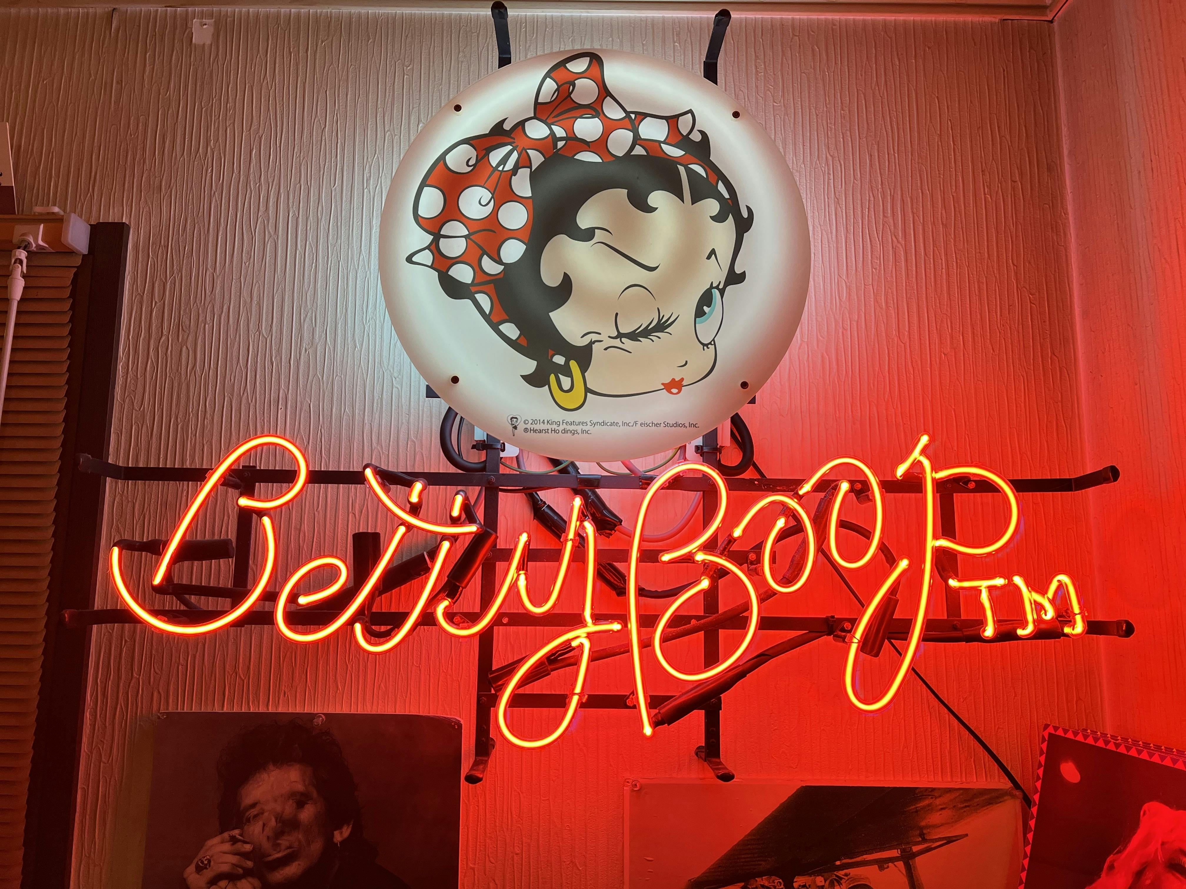 このバーには、夫婦で共に愛した「ベティー ブープ」のネオン管が飾られています。ベティー ブープは私たちにとって特別なキャラクターであり、特にこのネオン管は、夫と私の思い出が詰まった象徴的な存在です。クリエイティブな仕事に携わってきた夫にとっても、このネオン管はバーの雰囲気を創り出す重要な要素でした。明るく照らし続けるその姿は、共に過ごした日々や、二人の夢が込められた象徴でした。