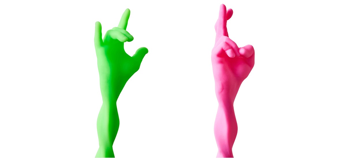 実際の手の形状を3Dスキャンニングして3Dモデル化。さらに3D CAD上で理想的な形に何度も微調整を行い知る人ぞ知るリアルなハンドサインを追求しました。