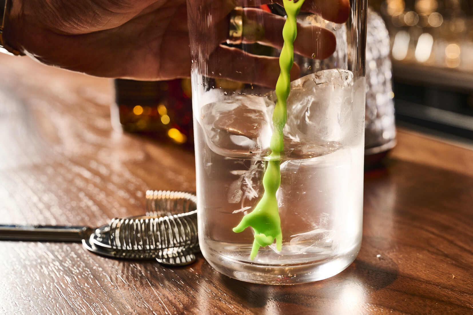 グラスからマドラーを上げたその瞬間も逃しません。滴り落ちる雫まで楽しめるよう指の形状を綿密に計算して設計しました。