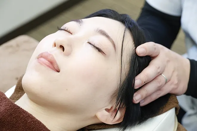 長時間のデスクワークによる肩・首の疲労が強く、日常的に頭が重く感じることが多いとおっしゃっています。お薬に頼らず、少しでもスッキリした状態を維持したいとのご希望があり、手技による施術を中心に対応しています。