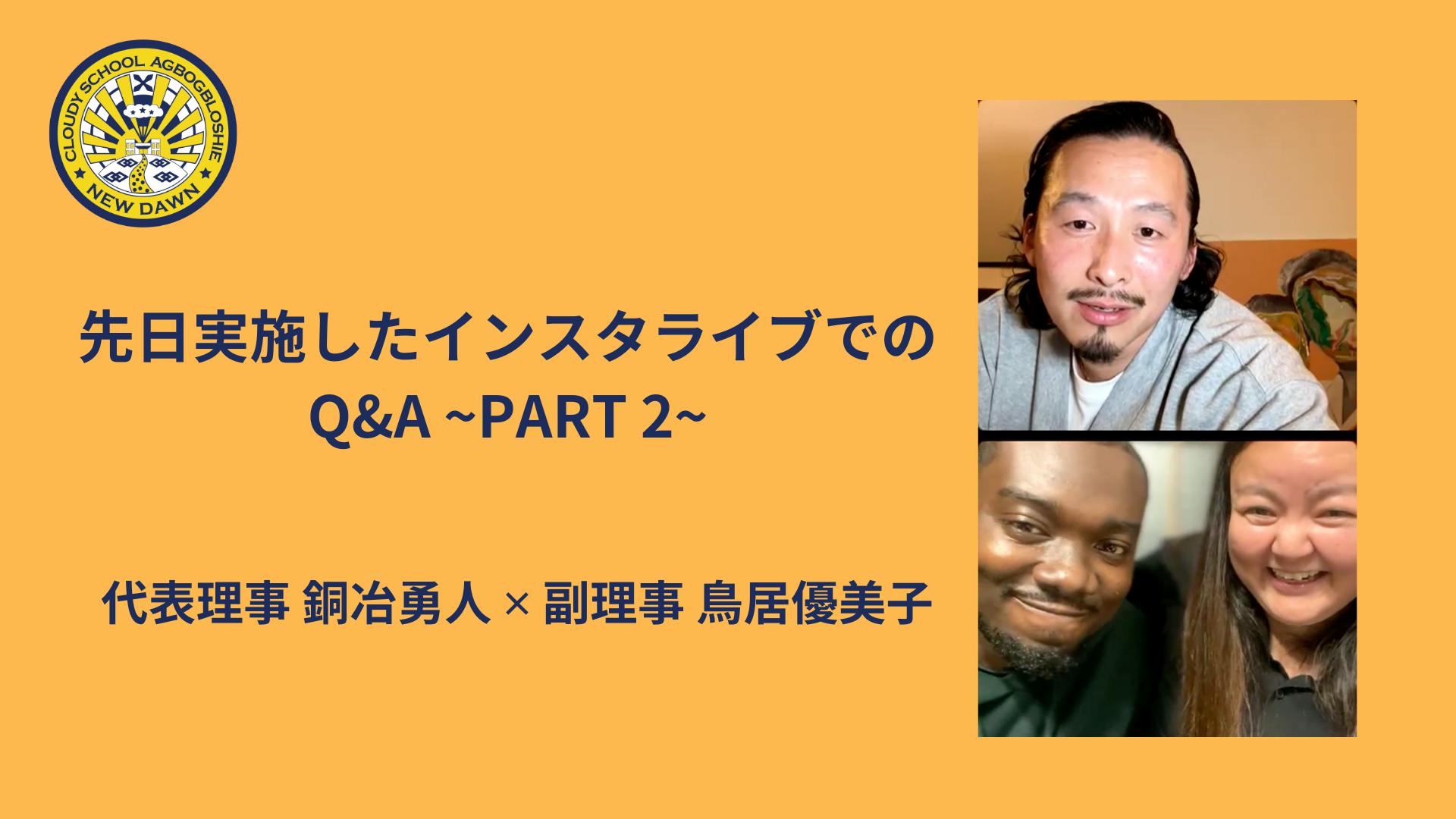 先日実施した代表理事 銅冶勇人 x 副理事 鳥居優美子のインスタライブでのQ&A -PART2-をお届けします!