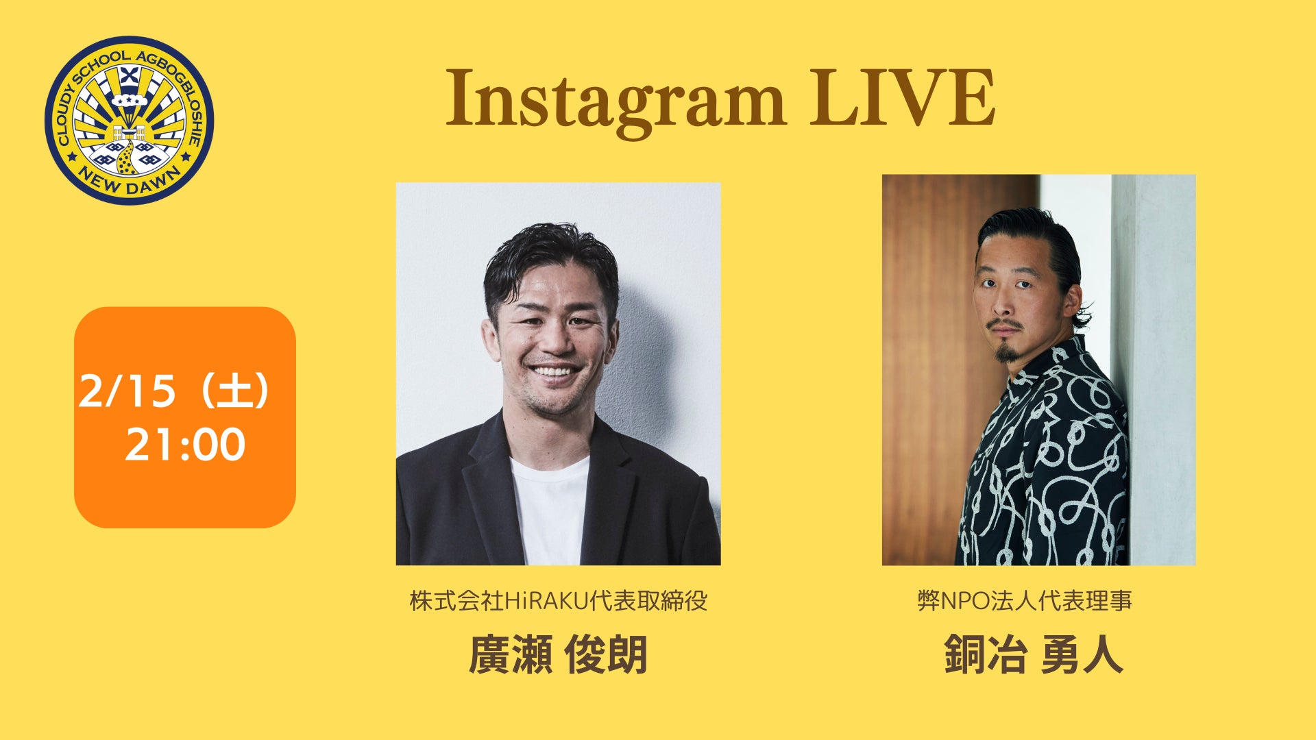 本日21:00より、株式会社HiRAKU 廣瀬俊朗さんと弊NPO法人代表理事 銅冶勇人でインスタライブを実施します!