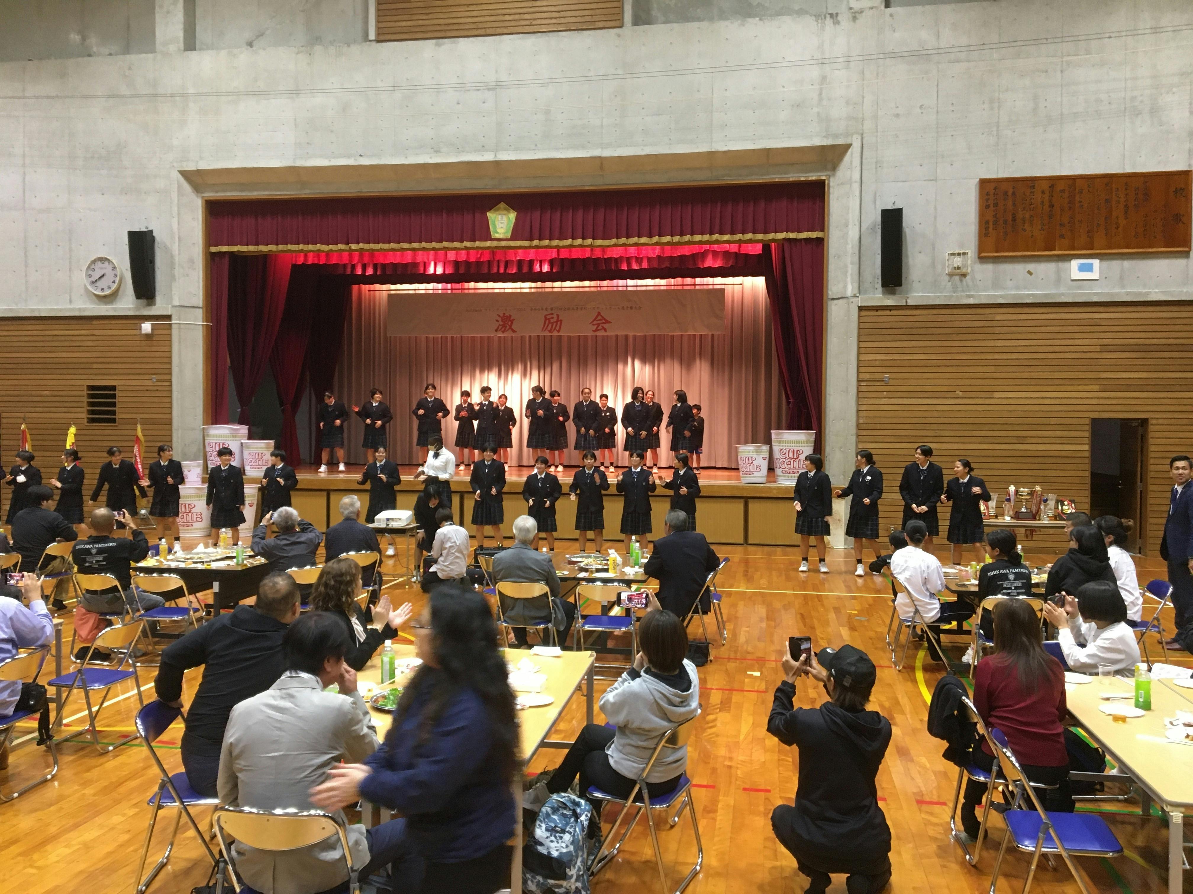 12月10日石川高校体育館にて、石川高校OBの方々がステキな激励会を開いて下さいました。OBの方々から熱い激励の言葉をもらい、石川高校女子バスケ部の生徒達も目標に向かってさらに気持ちが燃えた事でしょう!