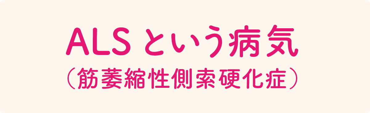 ALSについては、多くの方がご存知かもしれませんが、このページを通じて少しでも深く理解していただけたら嬉しく思います。そして、私たちが目指す支援活動に共感し、応援していただけましたら幸いです。