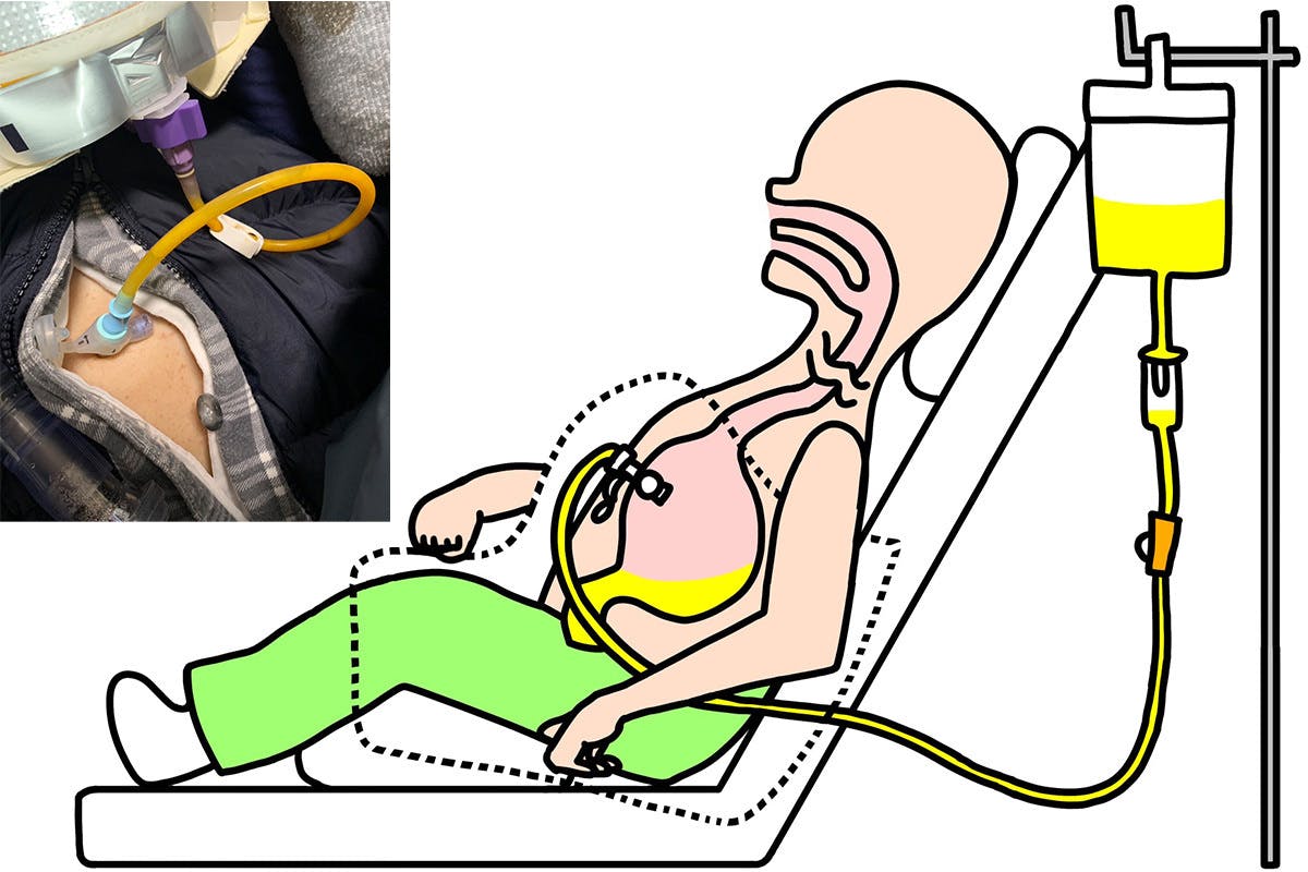 嚥下障害が進行すると、食事や水分を口から摂取することが難しくなり、誤嚥性肺炎のリスクが高まります。胃ろうを作ることで、安全に栄養を摂取してゆきます。