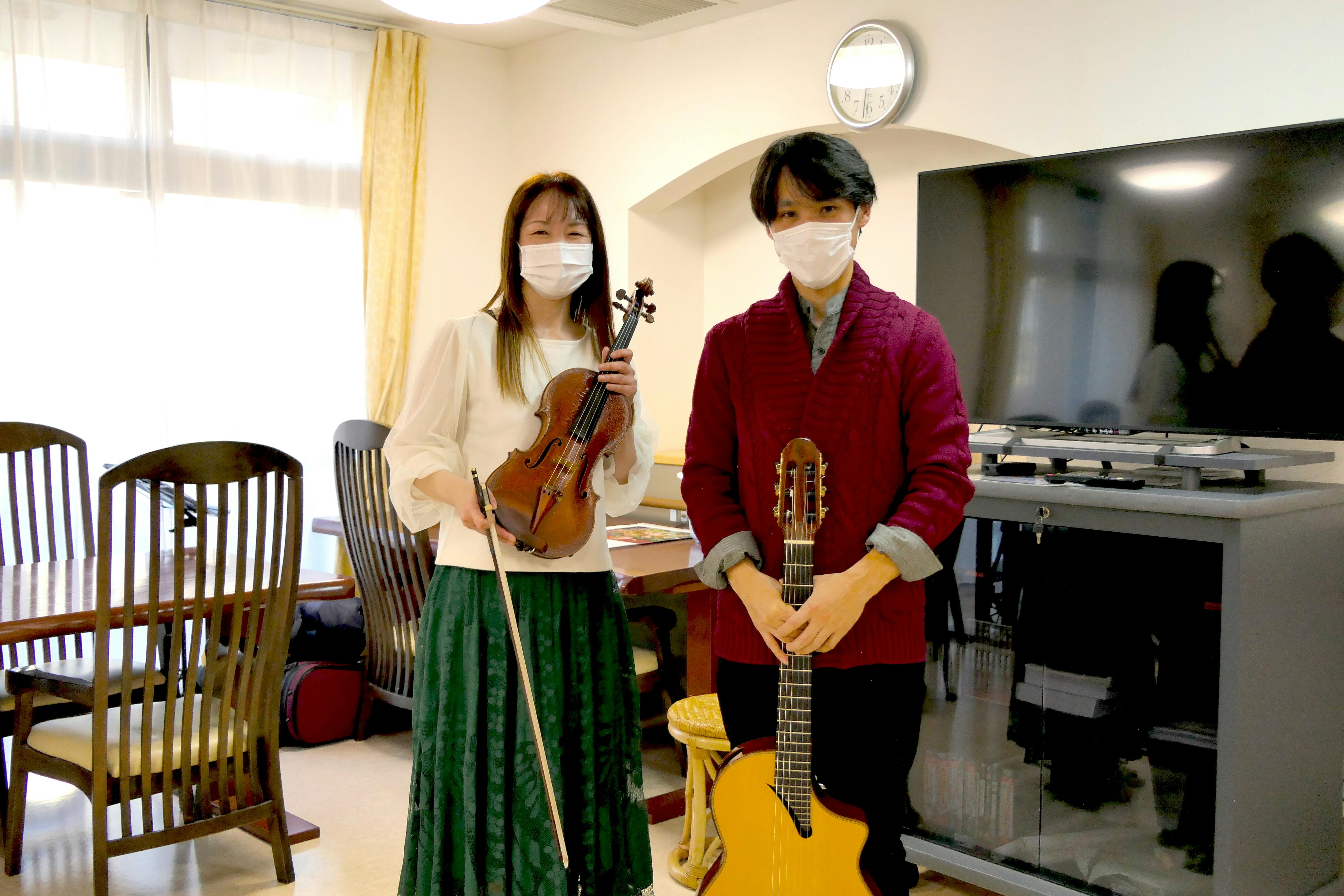 2025年12月9日 施設にお住まいのALS患者様へヴァイオリンとギターの演奏で訪問いたしました。