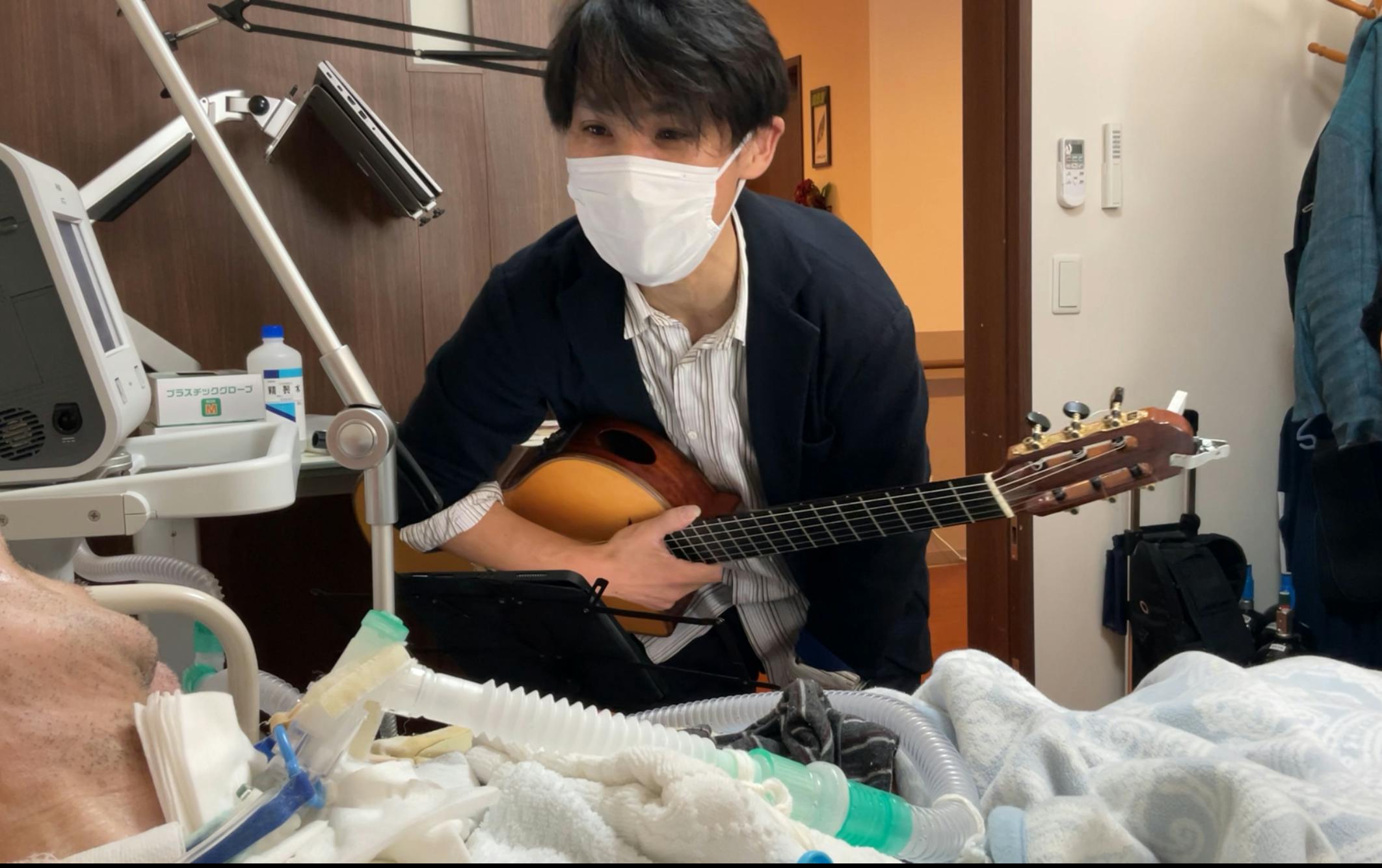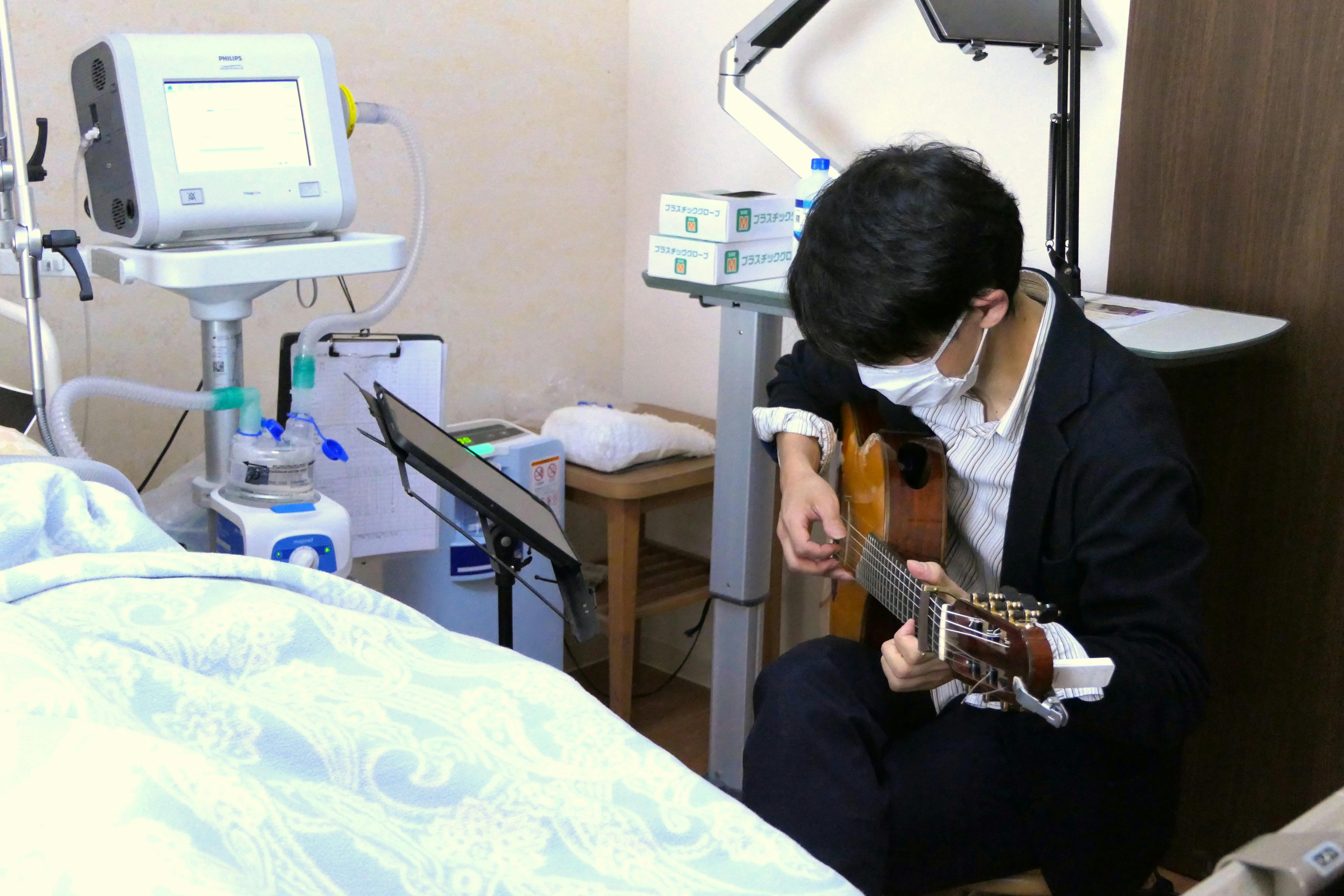 11月3日、福岡市城南区の施設にお住まいのALS患者様のもとへ、ギター演奏をお届けしてまいりました。