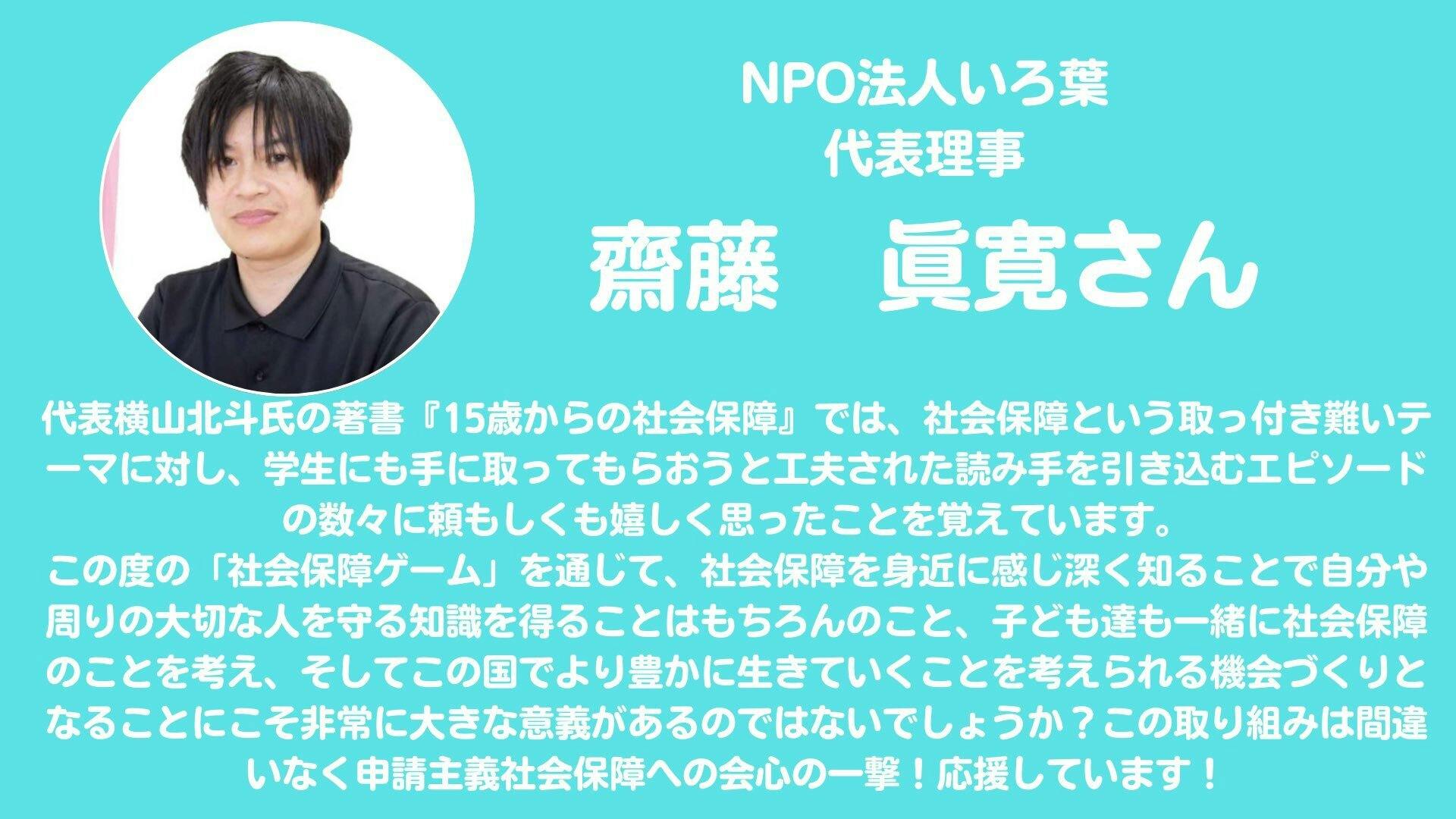 NPO法人いろ葉 代表理事 齋藤 眞寛さんから応援メッセージをいただきました!