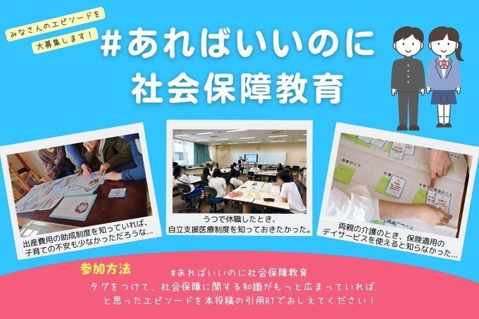 こちらのXの投稿を引用リポストいただき、ハッシュタグ「#あればいいのに社会保障教育」を付けて、ご自身のエピソードや想いを投稿してください。