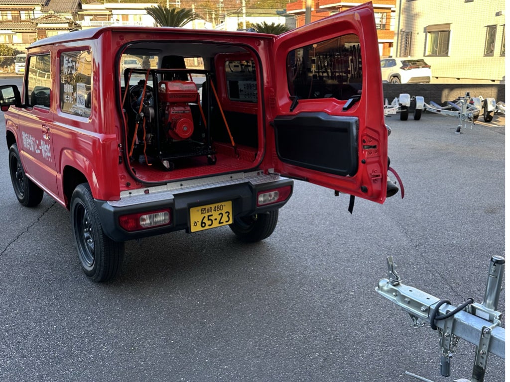 ホース巻取り機、制作・取付完了。資機材(消火器、水中ポンプ、発電機)等、積め込み完了。筒先は巻取り機上部に取り付けました。その他、運転席と荷台の間に柵も取付ました。これにより、急ブレーキなどをした際、ポンプが飛び出してくる心配もなくなりました。当初制作予定だった、ポンプ引き出しレールは、日程と予算の関係で旅から帰ってきたら制作することとしました。日本一周出発予定ですが、先日牽引トレーラーの入荷予定の連絡がありました。5月12日〜14日に店舗到着そこからナンバー登録等行います。なので20日前後が出発となりそうです。海外からの取り寄せのため、もっと長引く可能性も大いにありました。トレーラーなしでの出発も考えていました。でもそれでは1番やりたい、貯水タンクを水利としそこから放水が出来ないので、とりあえずトレーラーがくるということなので本当に良かったです!!また何か進展がありましたらご報告します。