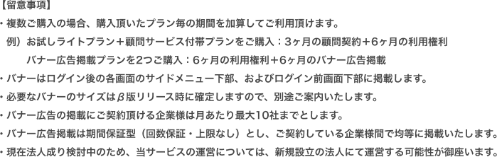 内容:お試しライトプランの内容+3ヵ月間のバナー広告掲載