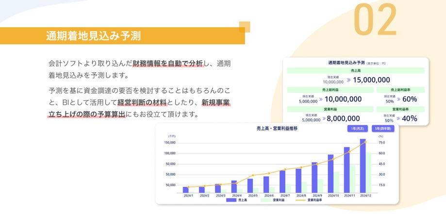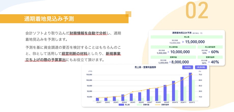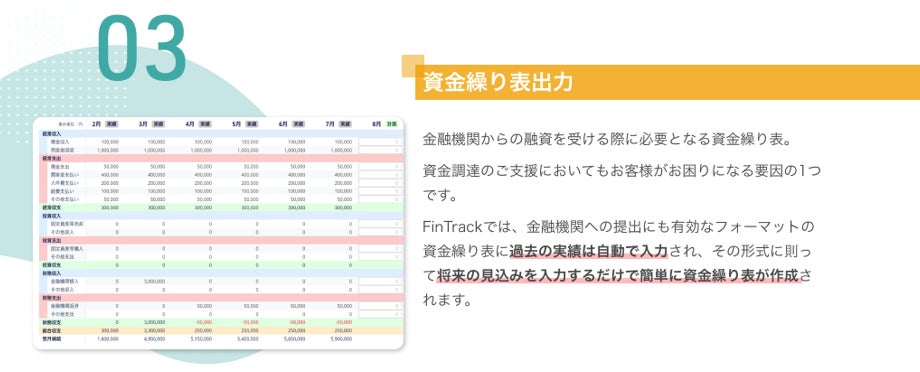 現状調べる限り、手入力を必要とせず会計ソフトと連携して財務分析が可能。また金融機関が要求するレベルの資金繰り表を作成するツールは存在しません。