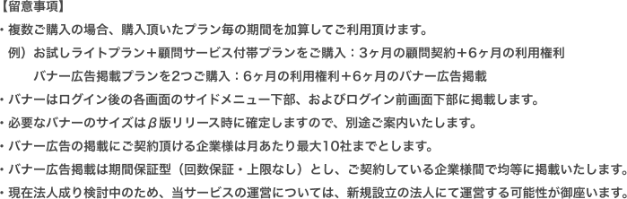 内容:(β版リリース後)先行利用権+(本格リリース後)3ヵ月間利用権