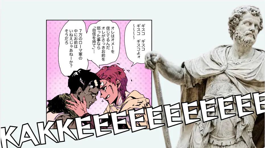 強大なローマとの戦いに怖気づく将校・ギスコを熱く励ますハンニバル。痺れる、憧れるゥ!