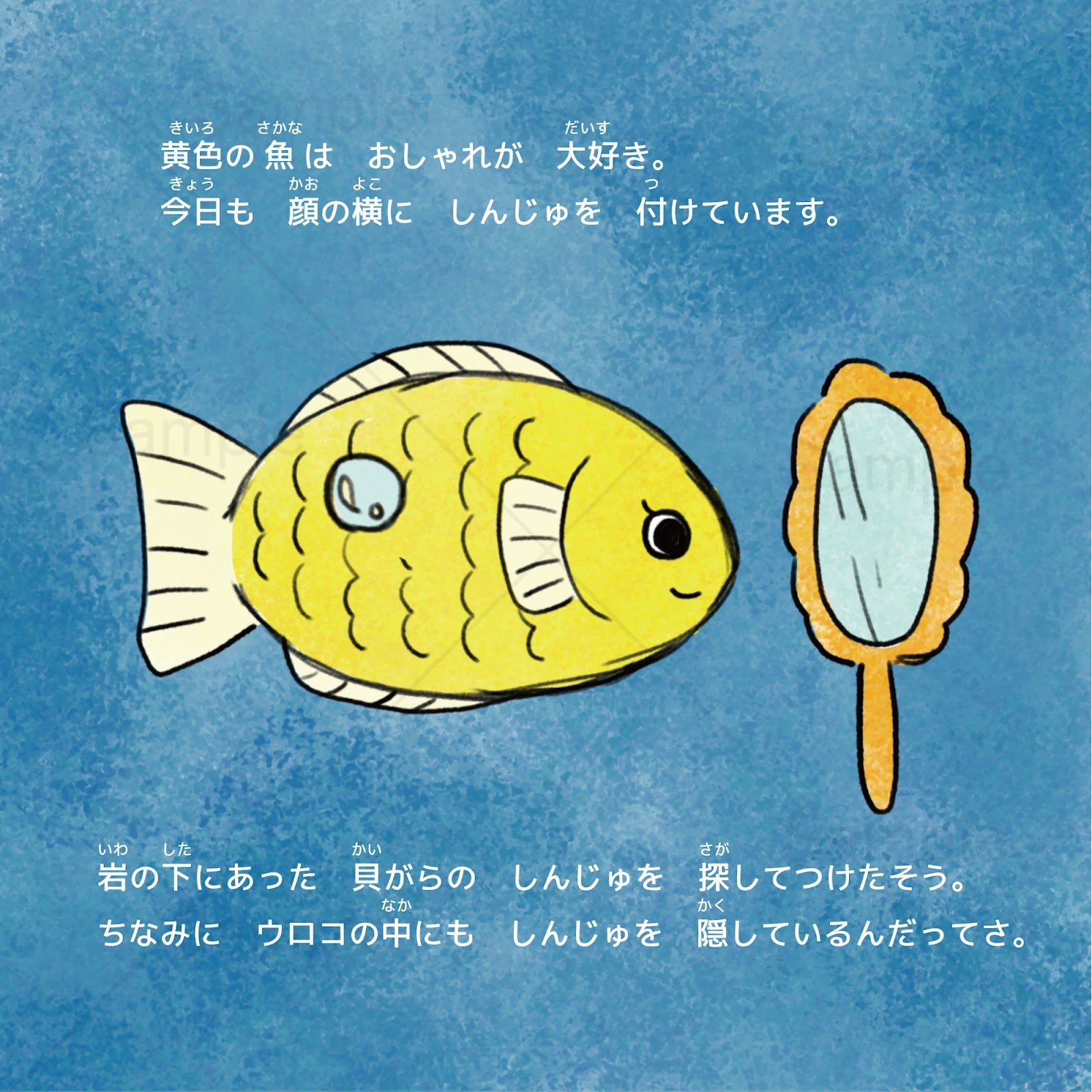 黄色い魚はおしゃれが大好き。顔の横には真珠をつけています。