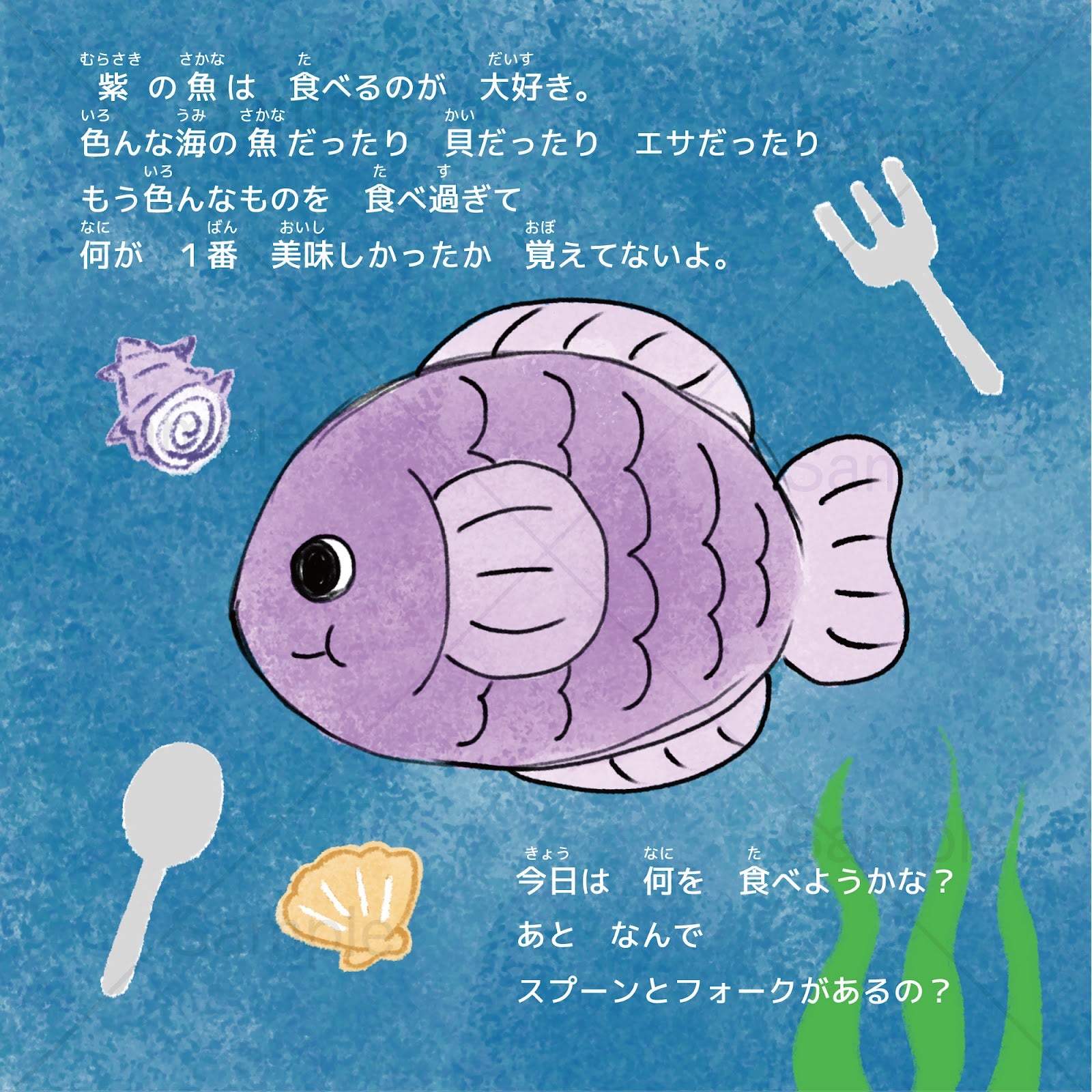 紫の魚は食べることが大好き。色んなものを食べすぎて、何が一番おいしかったかは覚えていません。