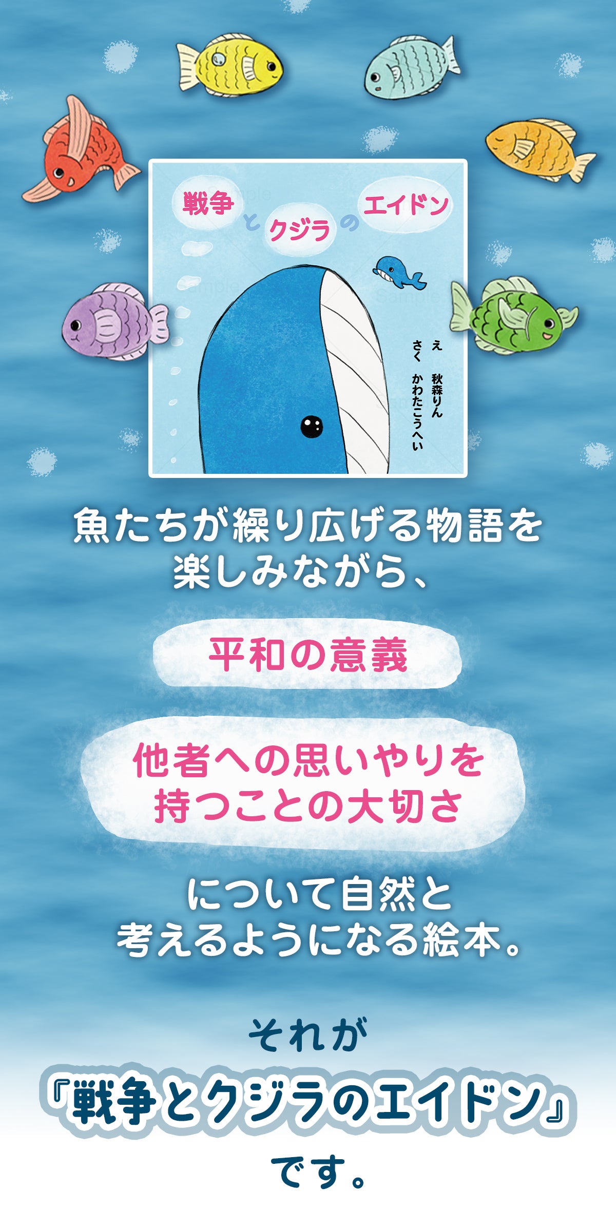 今回、子供たちが戦争について考えるきっかけになるよう、魚のストーリーに仕立てました。小学生が理解できるような物語になっています。